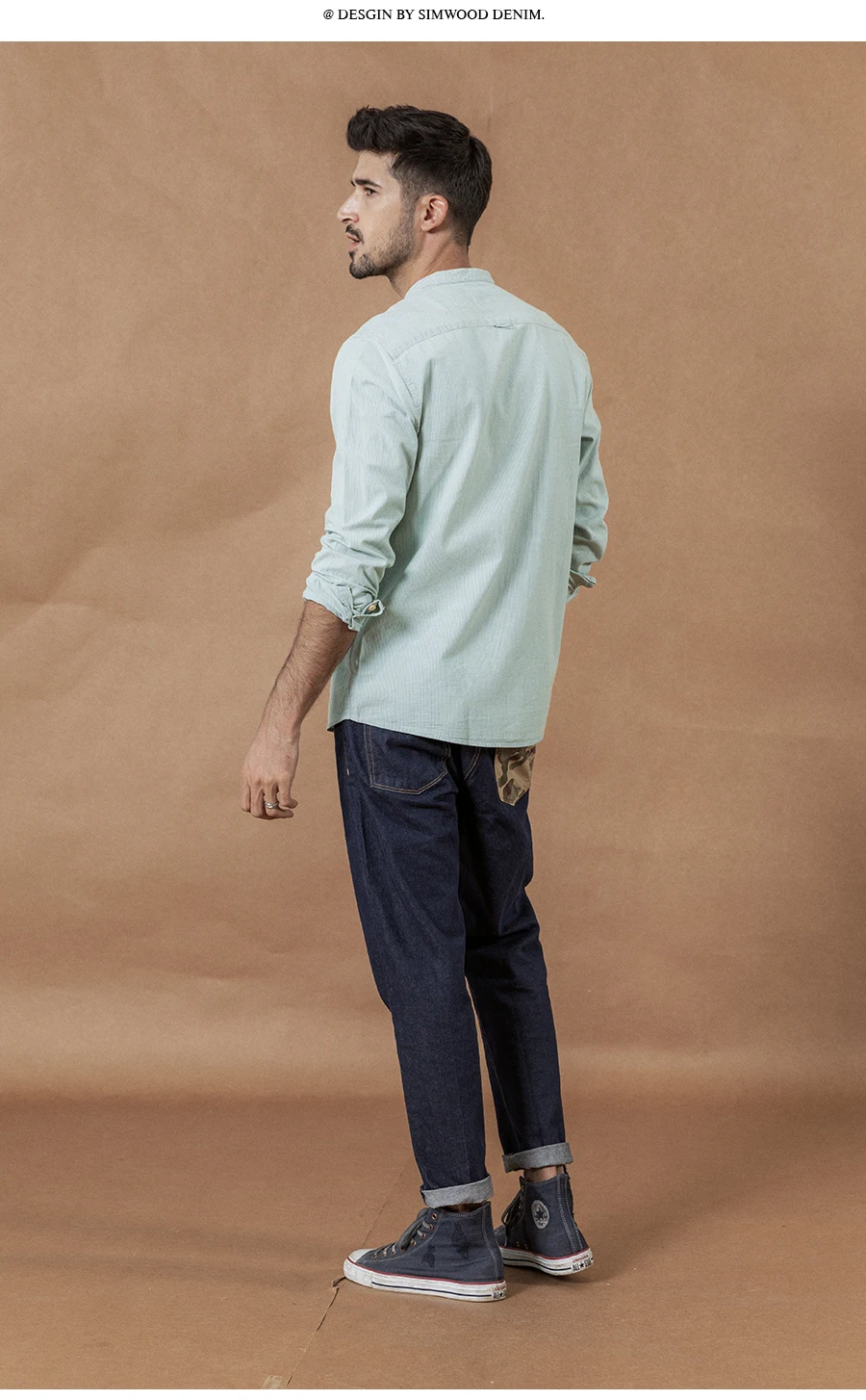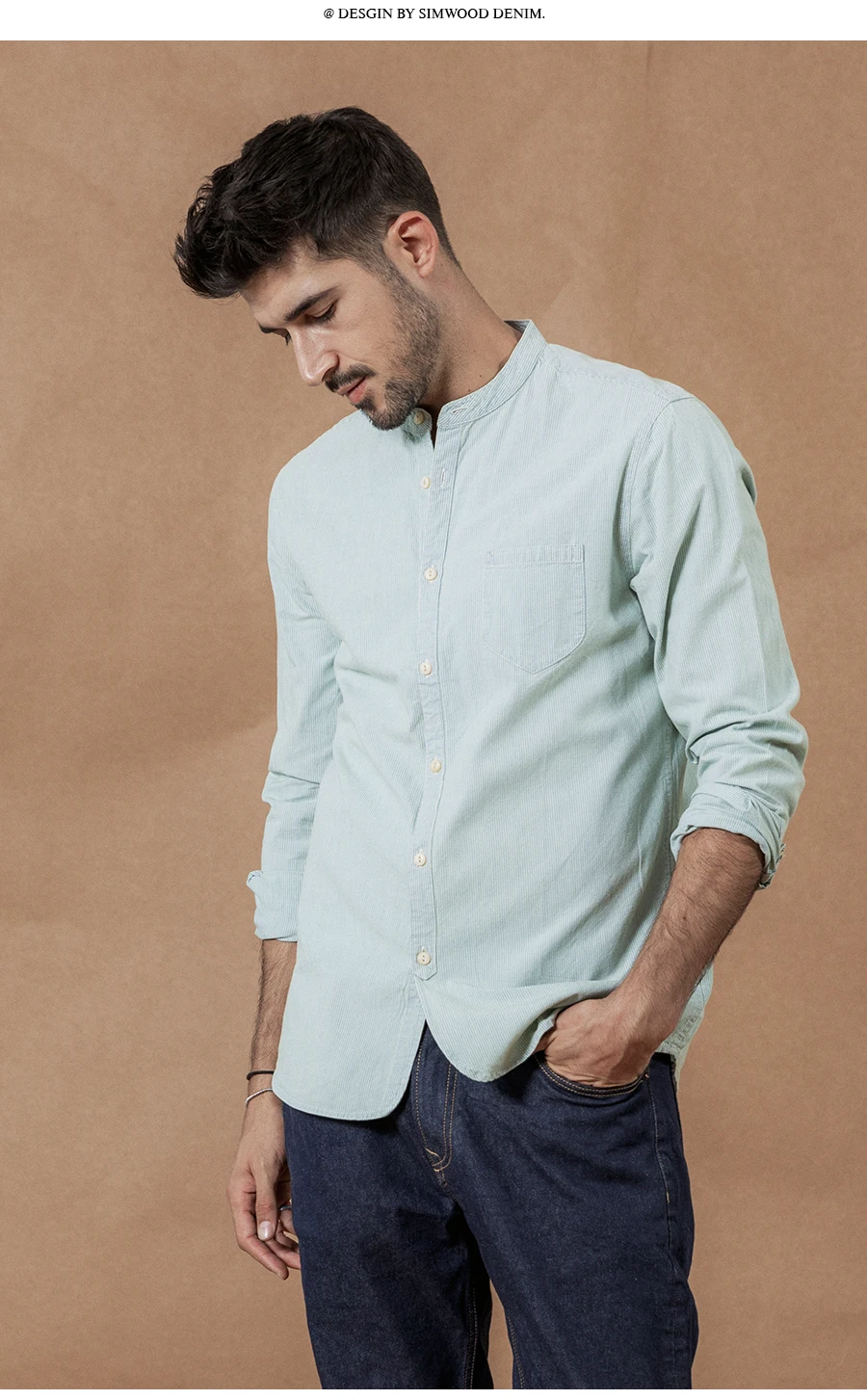Мужская рубашка в Вертикальную Полоску SIMWOOD, Классическая джинсовая приталенная рубашка из 100% хлопка, Повседневная рубашка в минималистичном стиле, CS135