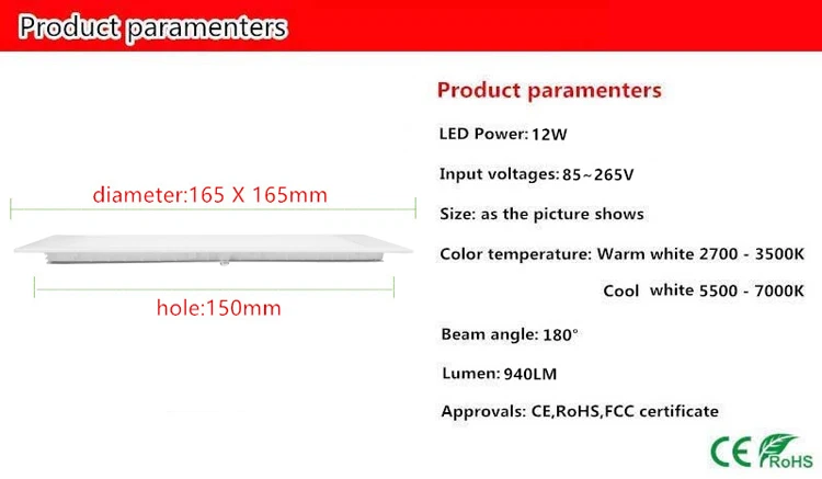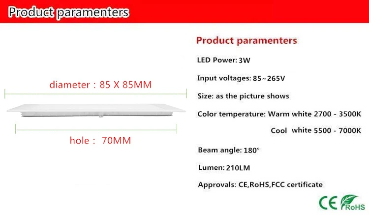 Квадратный светодиодный панельный светильник, 3 Вт, 6 Вт, 9 Вт, 12 ...