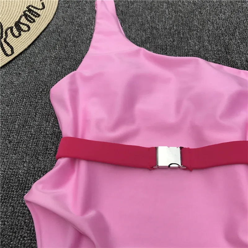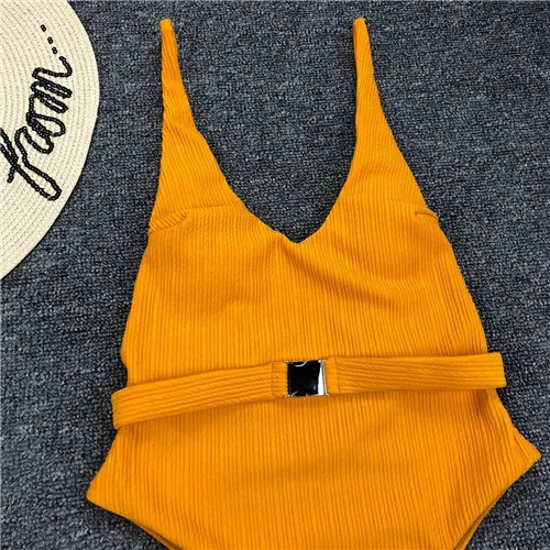 Женский слитный купальник в рубчик, однотонный купальный костюм с поясом, пикантный белый купальник, одежда для плавания, 2019