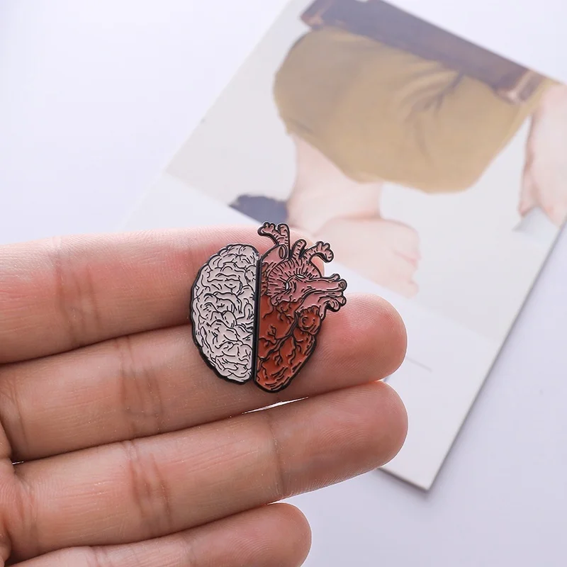 Эмалированная булавка Half Organ, в форме сердца, мозга, рациональн...