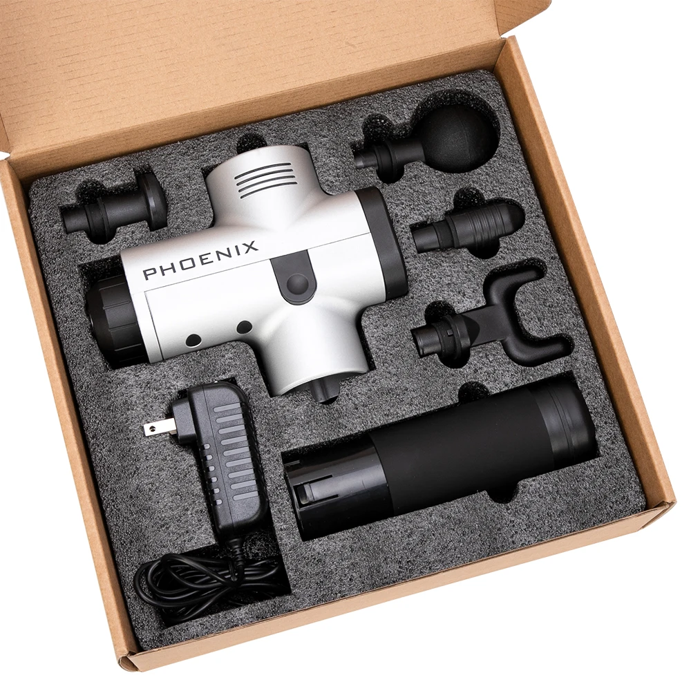 Пистолет для массажа мышц Phoenix A2, высокочастотный Электрический массажер для тела, Портативная сумка с прозрачной молочной кислотой после упражнений