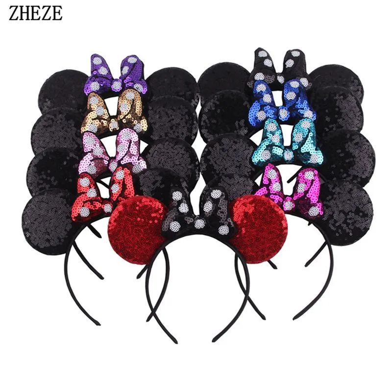 Модный стиль, классический горошек, блестки, бант, мышка, уши, для детей, для девочек, вечерние Фестивальная лента на голову, сделай сам, аксессуары для волос, 2021 фото, профессиональная повязка на голову