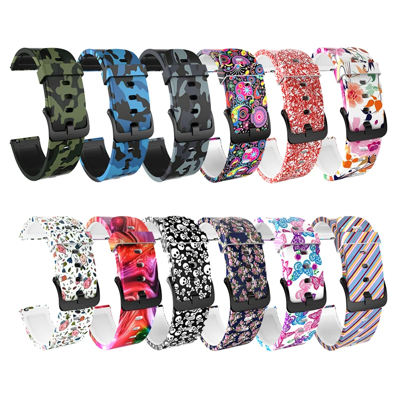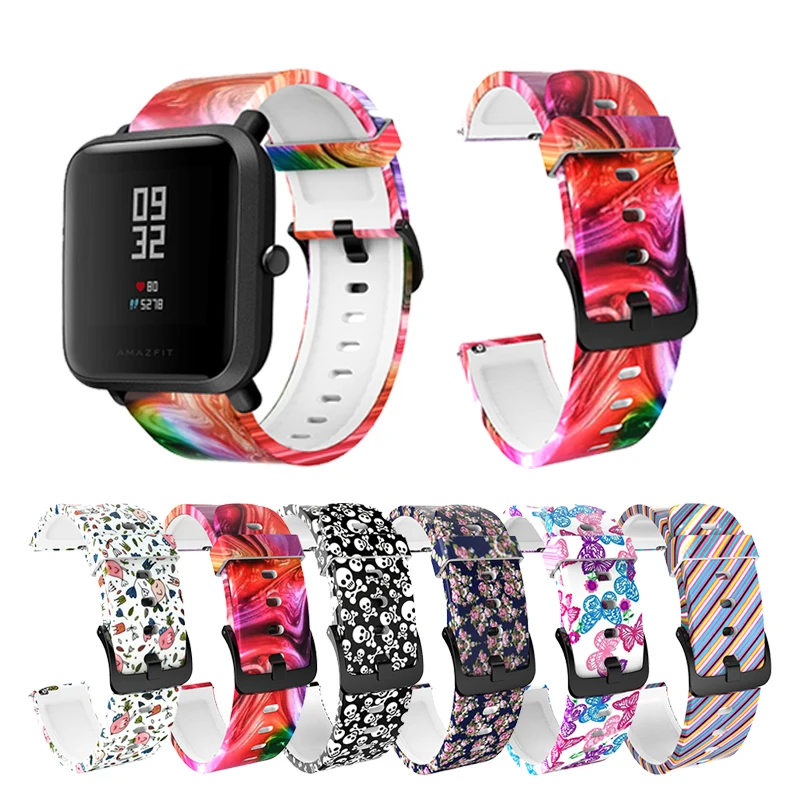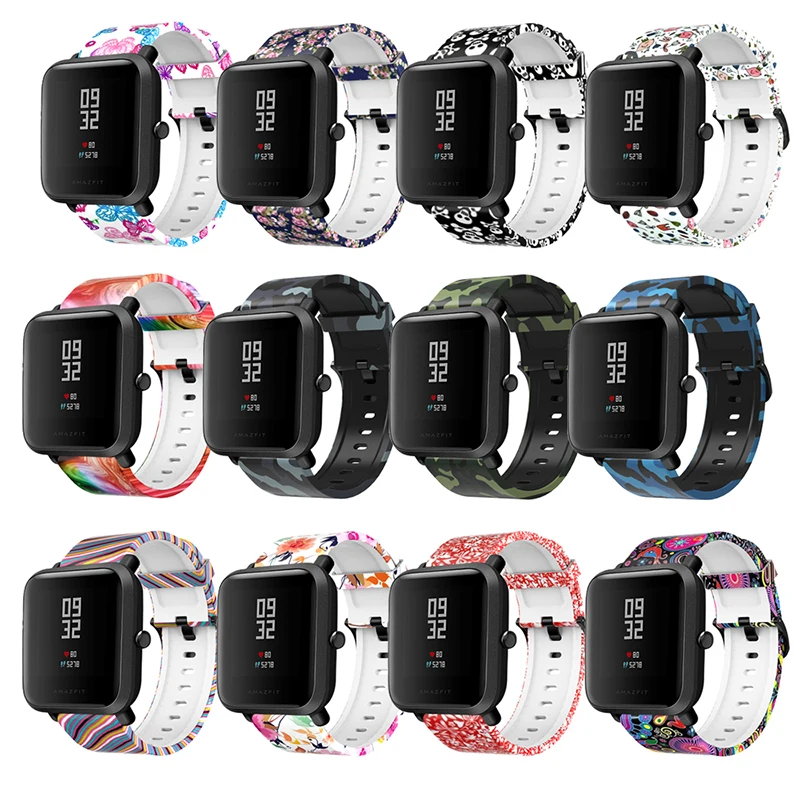 Ремешок BOORUI Amazfit Bip 20 мм, камуфляжный силиконовый ремешок для часов с разнообразным цветочным принтом 20 мм, ремешок для Xiaomi Huami Amazfit