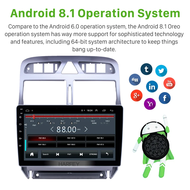 Мультимедийный плеер Harfey 2din, 9 дюймов, GPS, Android 8,1, для Peugeot 307, 2007, 2008, 2009, 2010, 2012, 2013, головное устройство, автомагнитола