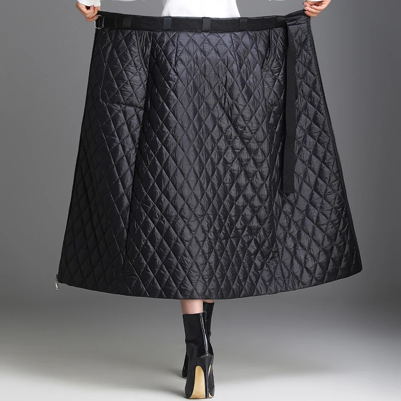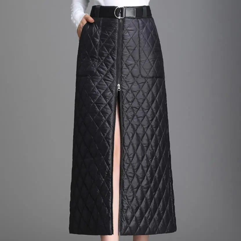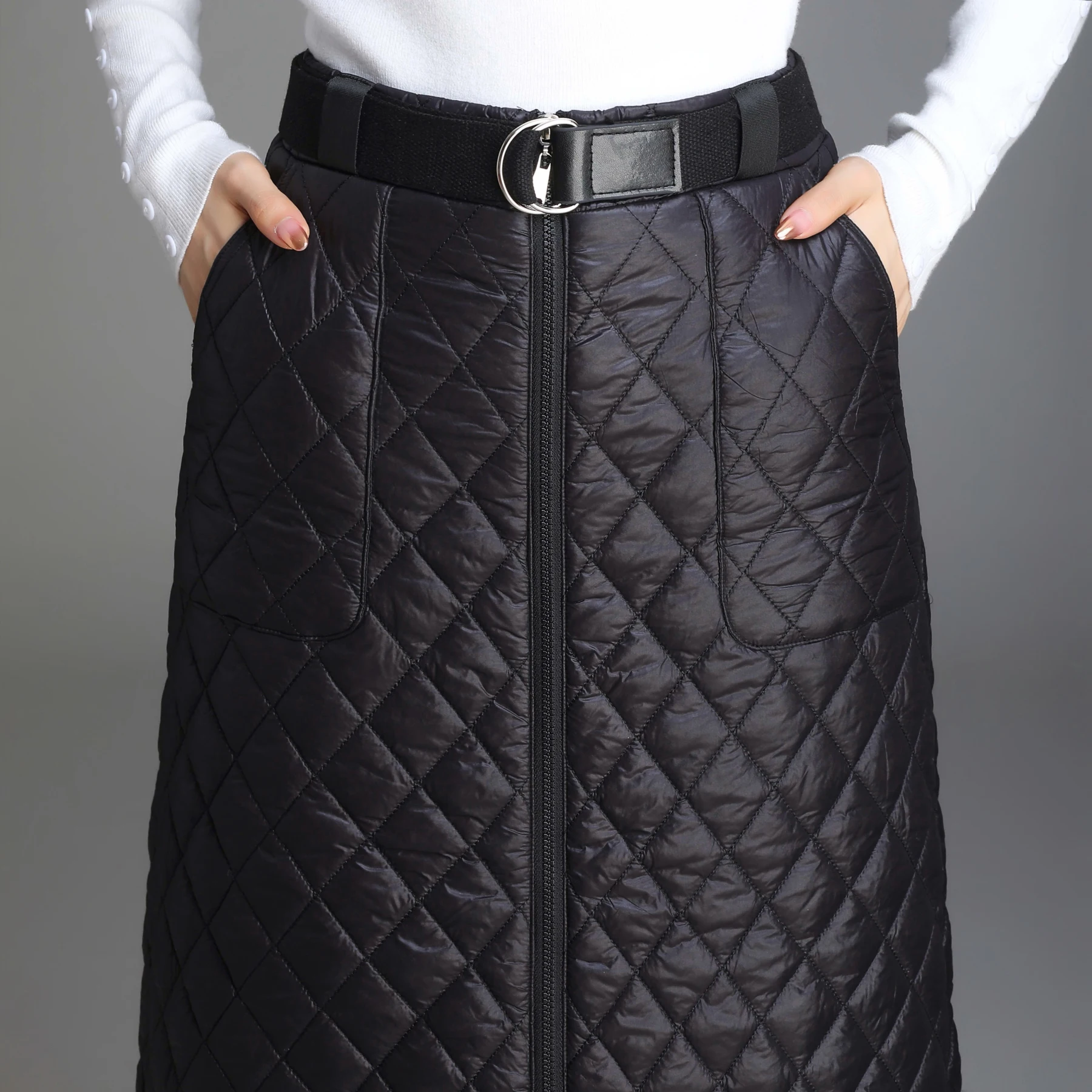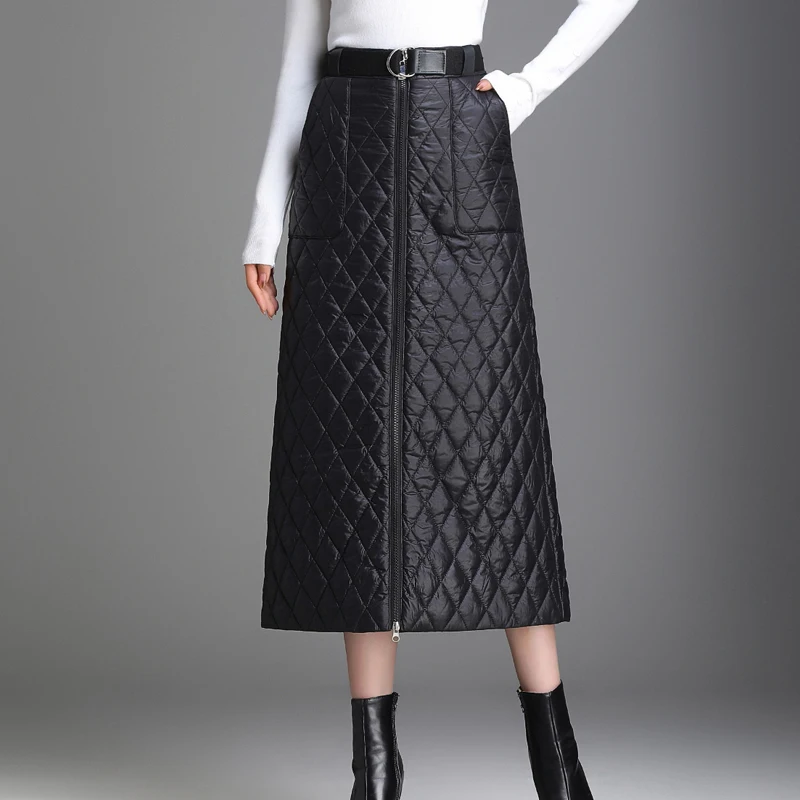 Юбка хлопковая зимняя, на молнии, плотная, теплая, с высокой талией, с разрезом, 4XL, размера плюс
