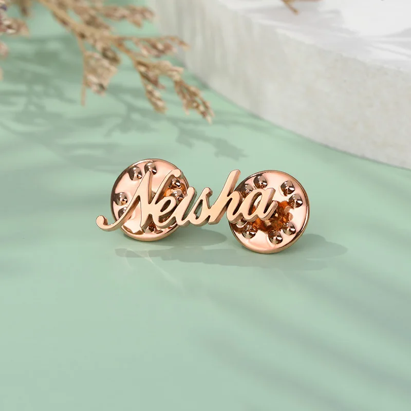 Броши с именем на заказ для женщин, мужчин, из нержавеющей стали розового золота, серебра, стальная брошь, значки, персонализированные ювелирные изделия для одежды