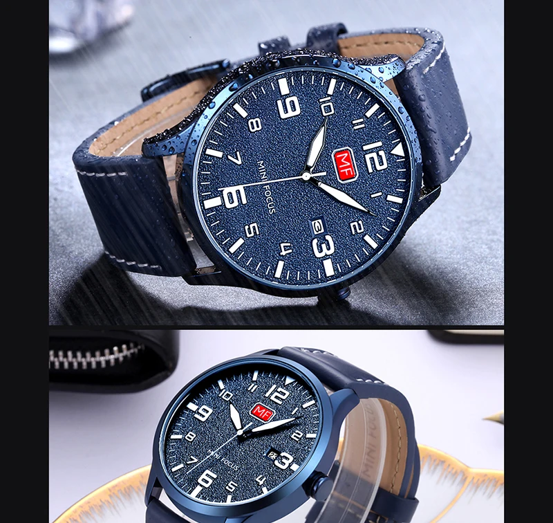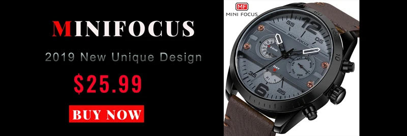 1x100% Minifocus мужские часы Подарочная коробка-1 шт. 1 х гарантийный талон 1 x инструмент для регулировки ремешка часов 1 x Ткань для очистки 1 x запасная батарея