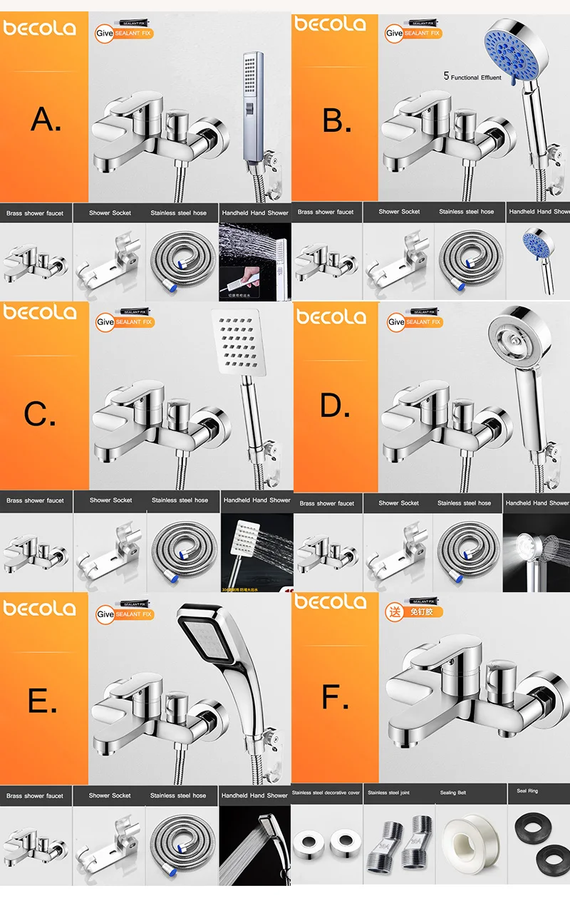 Новый современный хромированный латунный Смеситель для ванны becola, настенный кран для ванной комнаты с ручным душем, Набор смесителей для душа