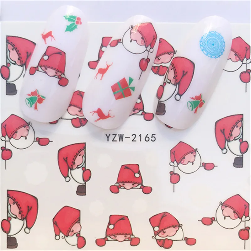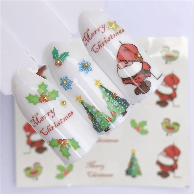 1 лист стикеров для ногтей в рождественском стиле, Водные Наклейки, слайдер, Санта Клаус, снеговик, украшения, маникюрные Обертывания для ногтей, инструмент