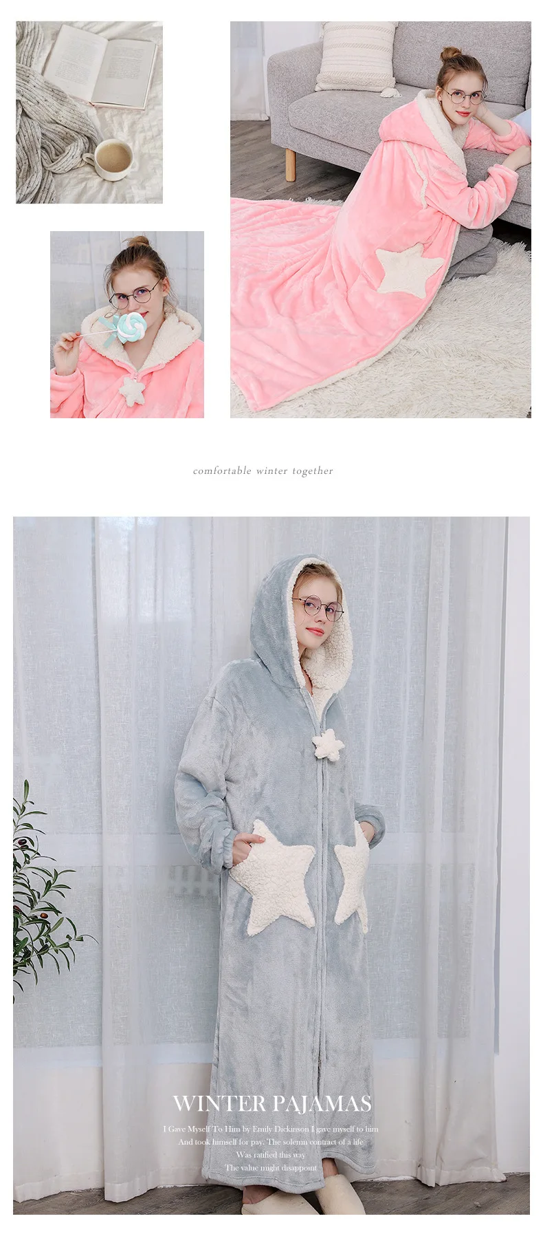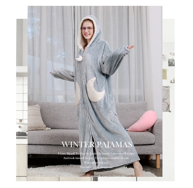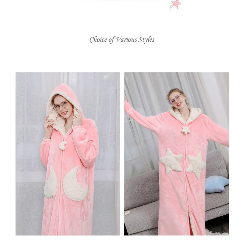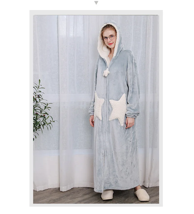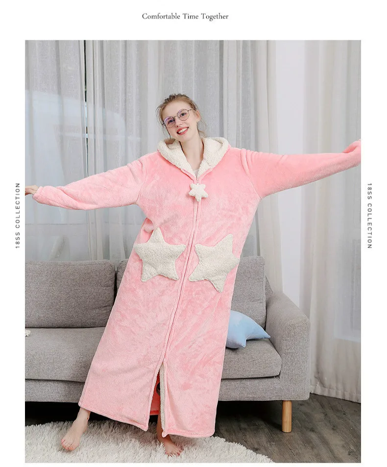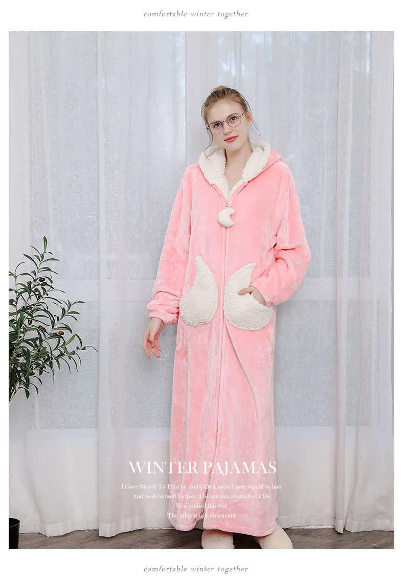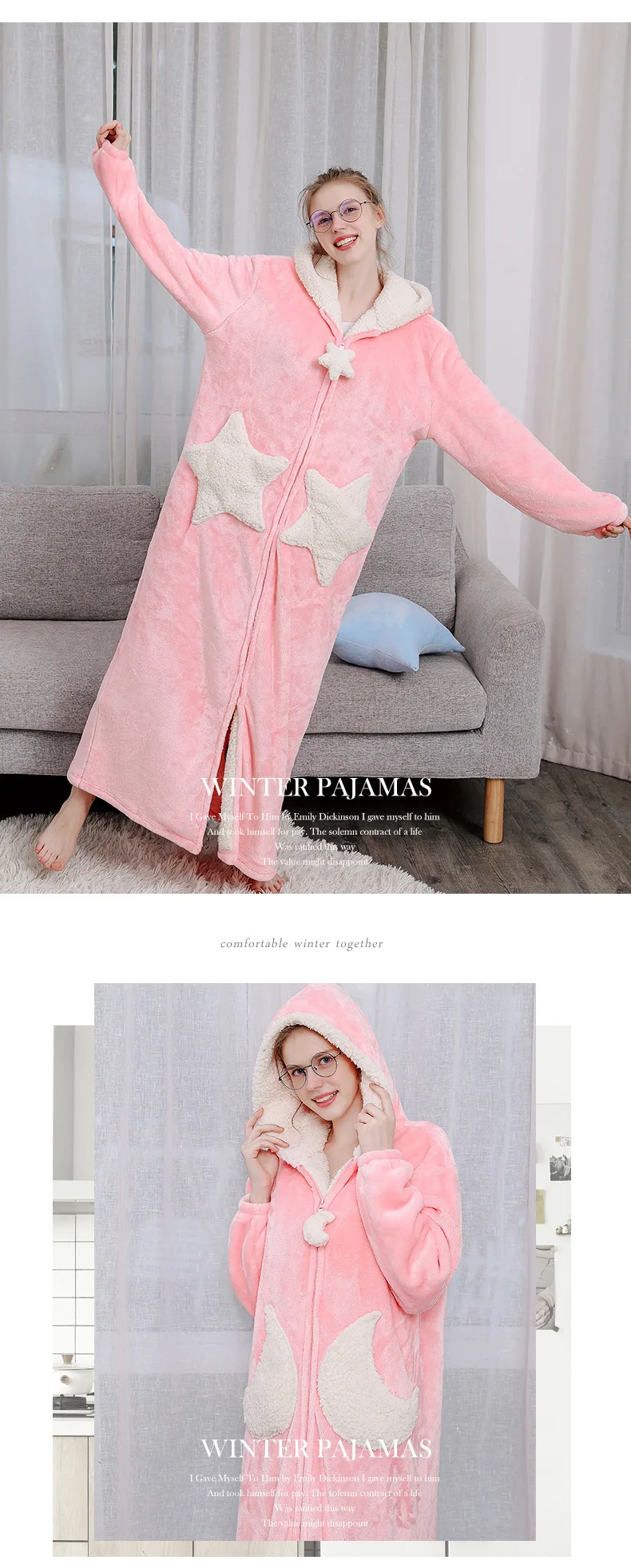 Зимний плотный очень длинный Пижамный халат на молнии, женский модный теплый банный халат со звездами и луной, свободный халат подружки невесты, Халат