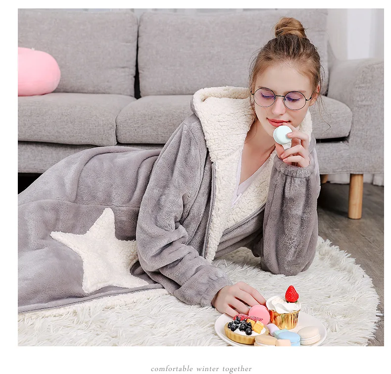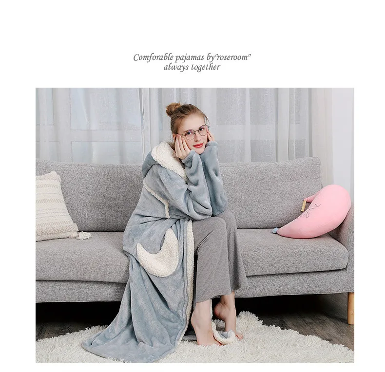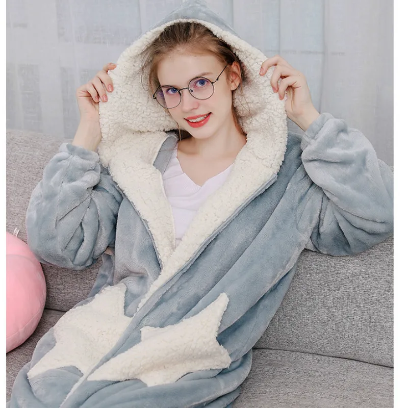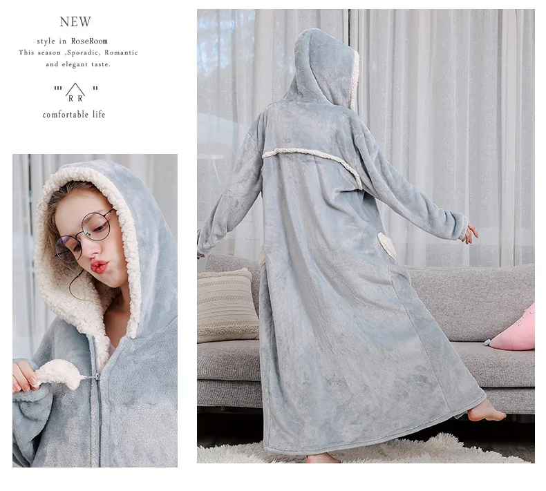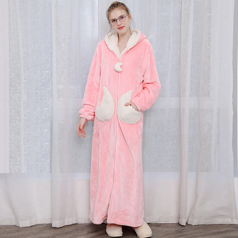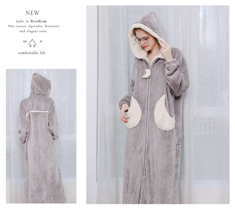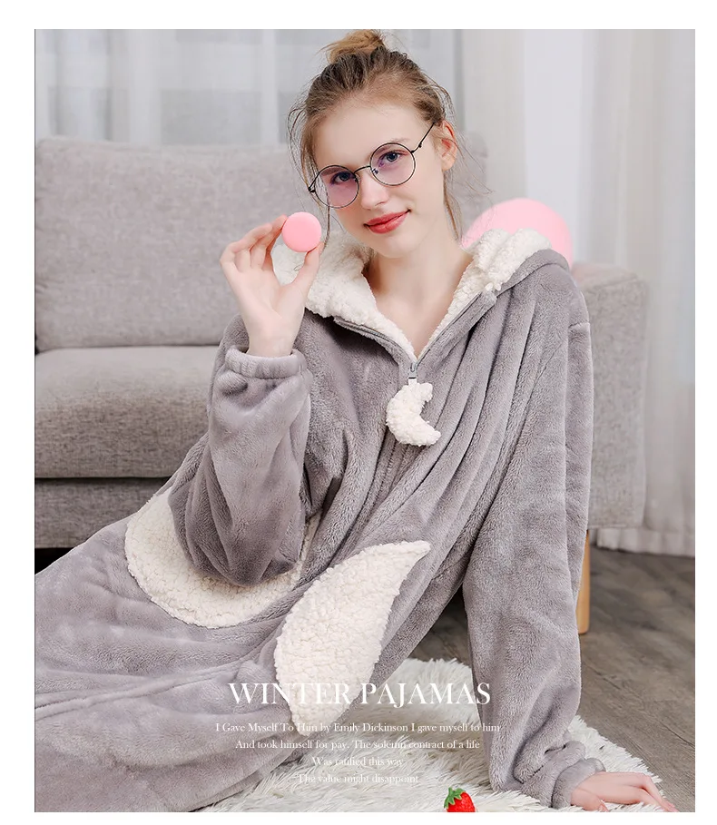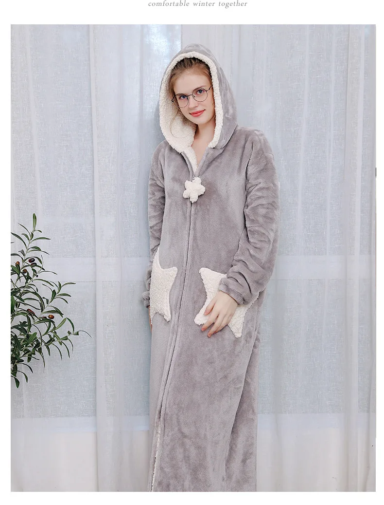 Зимний плотный очень длинный Пижамный халат на молнии, женский модный теплый банный халат со звездами и луной, свободный халат подружки невесты, Халат