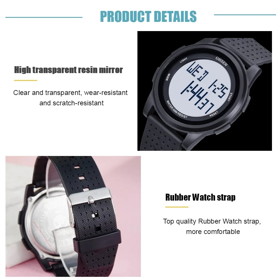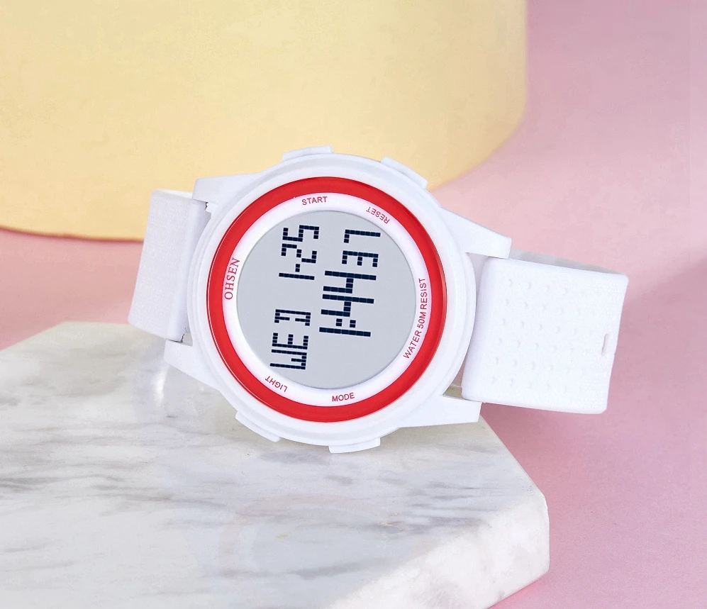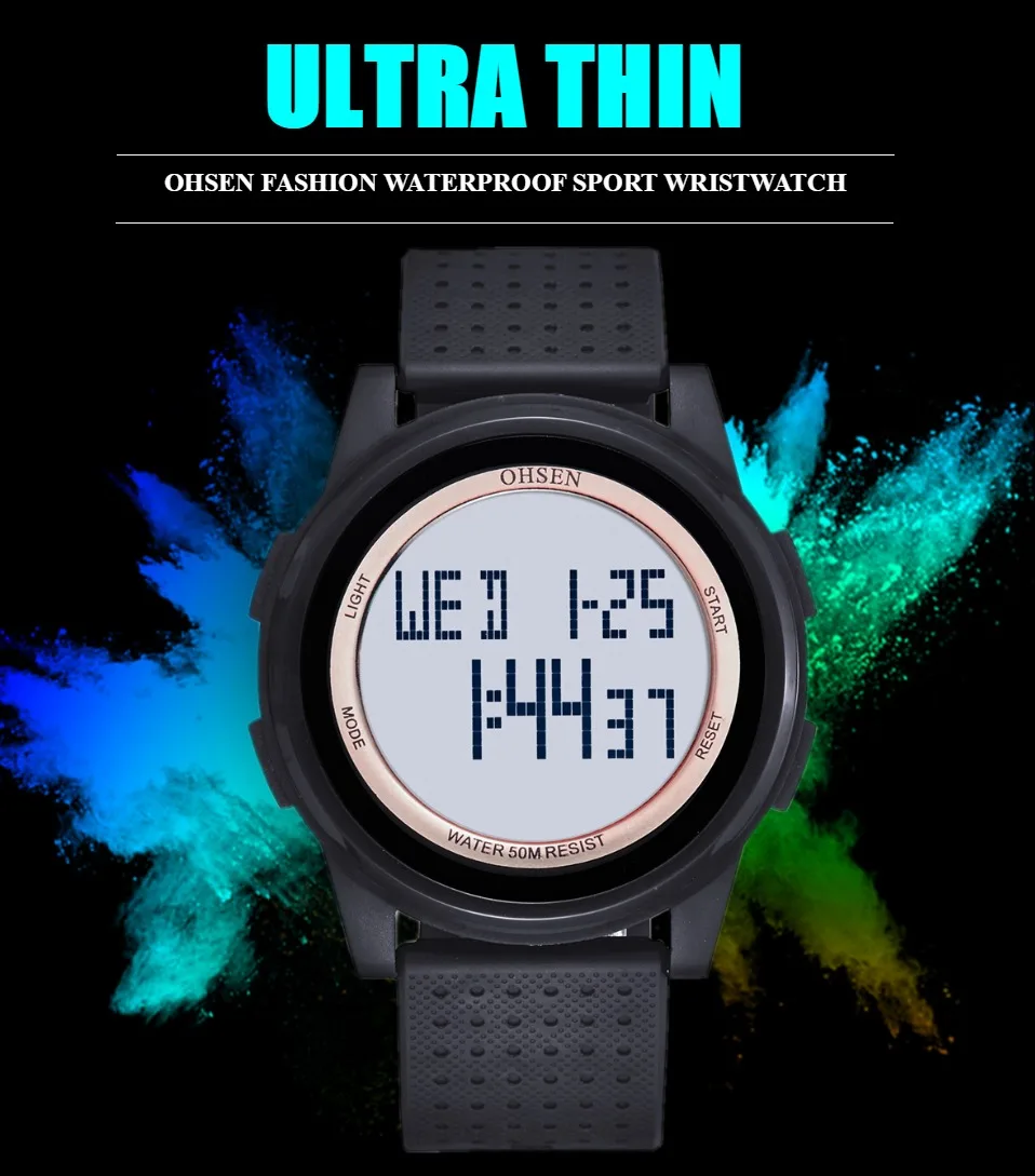 Цифровые женские наручные часы OHSEN, ультратонкие, водонепроницаемые, белые, электронные, спортивные, мужские часы