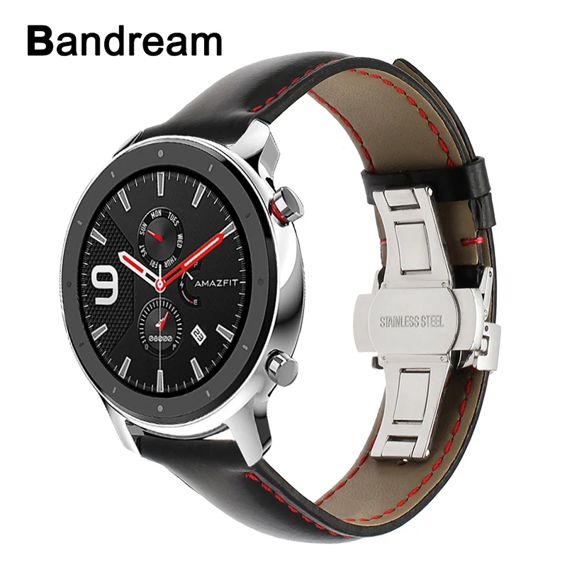 Ремешок итальянский из натуральной кожи для наручных часов, быстросъемный браслет с застежкой-бабочкой для Huami Amazfit GTR 47 мм 42 мм, 20 мм 22 мм