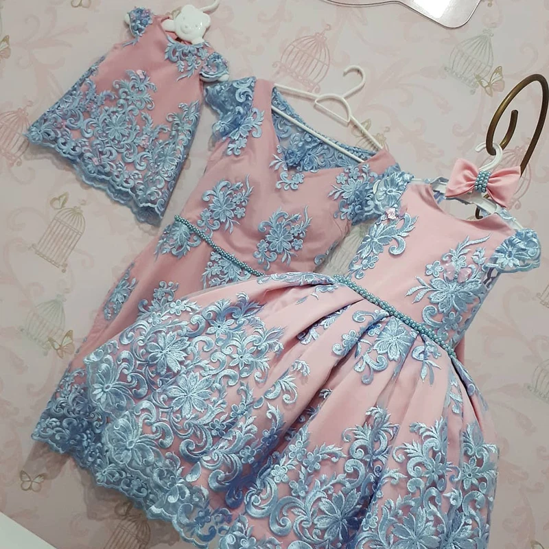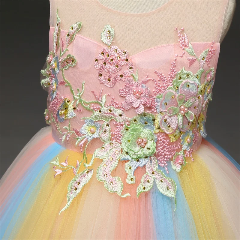 Кружевное бальное платье для девочек, с цветочной вышивкой