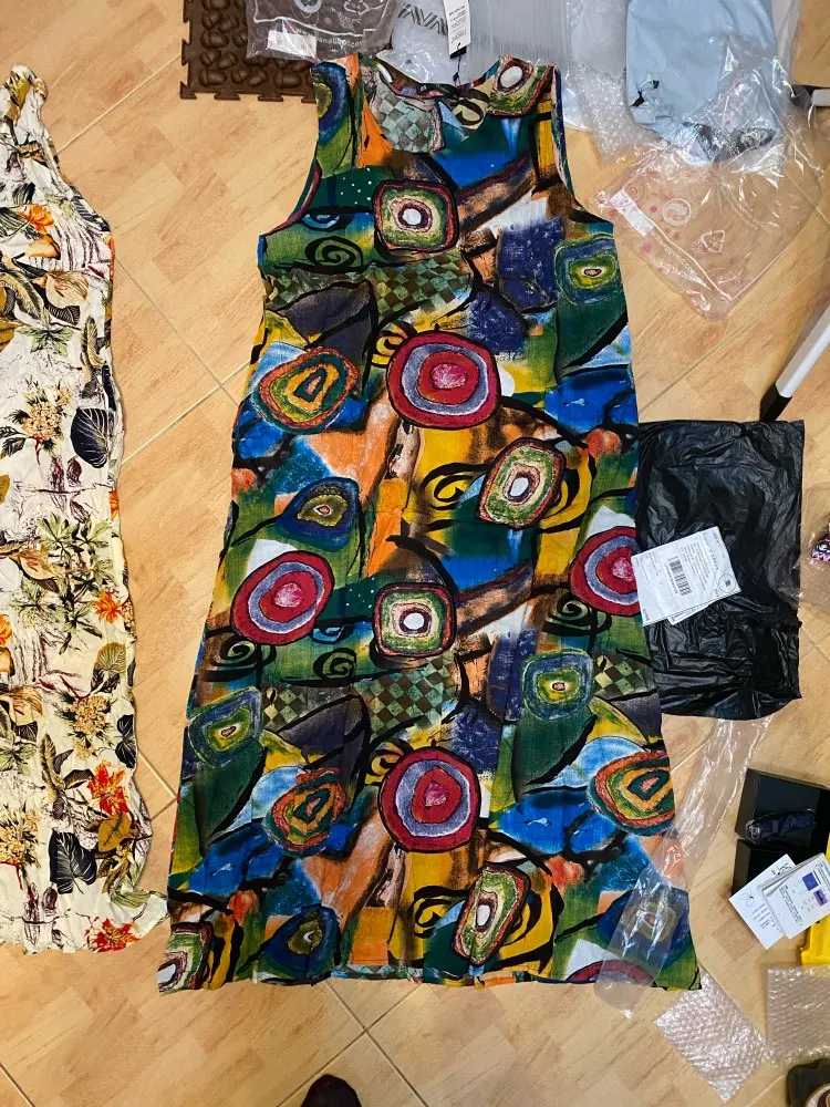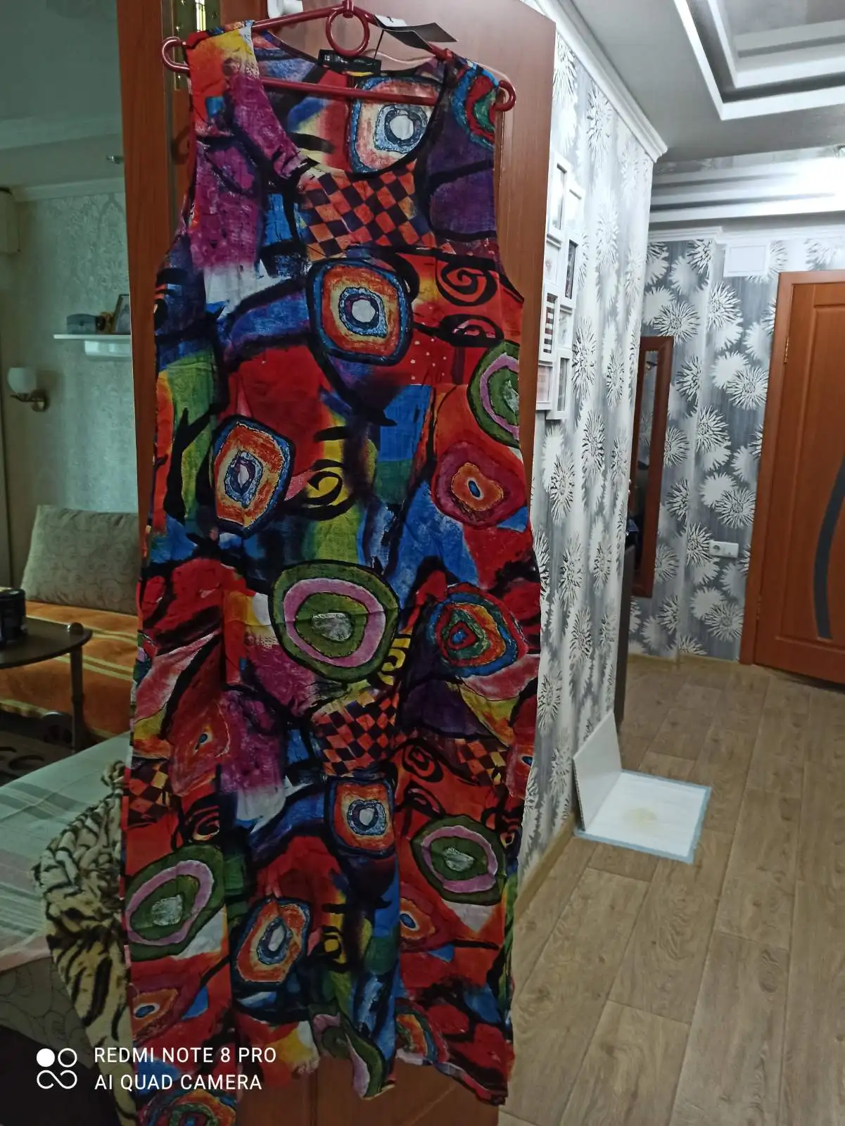 Заказ пришел быстро. Для лета отличное,лёгкое платье.Материал дышащий,похоже на хлопок Пошив простой,но краски яркие красивые