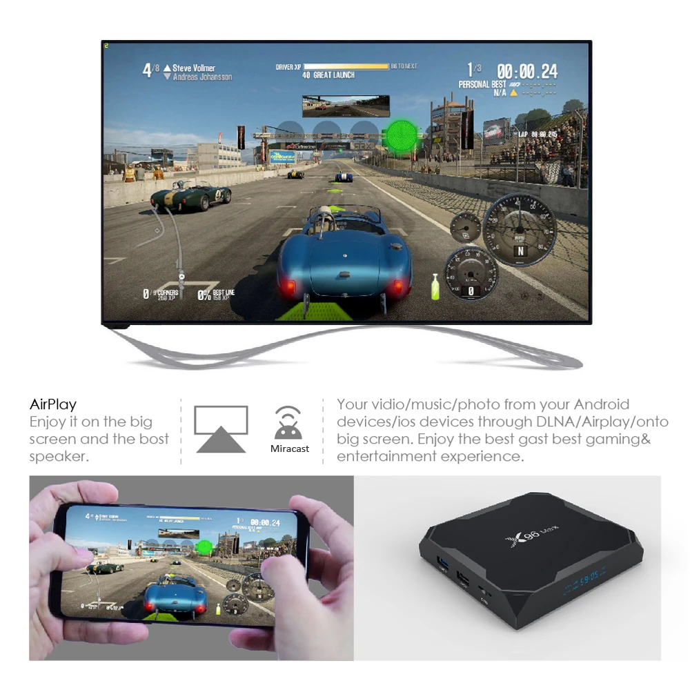 Особенности: ОС Android 8,1: С системой Android 8.1, которая идеально подходит для производительности, стабильности и производительности, а также для различных функций и оптимизации, она обеспечивает улучшенный пользовательский опыт. Четырехъядерный процессор Amlogic S905X2: Он питается от высокопроизводительного четырехъядерного процессора Amlogic S905X2 и оснащен HD 2,1, USB 3,0 и графическим процессором Davlin MP2, который сочетает в себе высокую производительность и низкое энергопотребление. 4K домашний кинотеатр: Поддержка аппаратного декодирования видео 4K UHD. Это позволяет смотреть любимые фильмы при ярком и плавном воспроизведении. Большое хранилище: 2 Гб LPDDR4 RAM и 16 Гб eMMC ROM обеспечивают множество возможностей для гладкой обработки и хранения данных, а также предотвращают сбои из-за отсутствия памяти. Поддержка tf-карты для расширения памяти и хранения большего количества фильмов. 2,4G/5,8G двухдиапазонный WiFi: Поддержка Wi-Fi 2,4G и 5,8G, обеспечивая надежную сетевую среду. После подключенияX96 MAXБлагодаря Wi-Fi ваш HDTV превращается в умную машину, что облегчает Домашние развлечения. Примечания: 1: сначала Подключите ТВ-бокс к телевизору 4K, а затем в настройках разрешения появится возможность разрешения 4K. 2: пульт дистанционного управления продукта относится к прилагаемому и функциональному аксессуару. Если часть функций продукта не может контролироваться контроллером, пожалуйста, приобретайте внешнюю мышь или воздушную мышь для работы. У вас будет лучший опыт использования. 3. При настройке, если позиция курсора не видна, для выбора позиции курсора может использоваться дистанционный указатель мыши. Основные характеристики: Процессор: четырехъядерный Cortex-A53 Amlogic S905X2 (частота: 2 ГГц) Графический процессор: ARM Davlin MP2 ОЗУ: 2 Гб LPDDR4; ПЗУ: 16 Гб eMMC WiFi: IEEE 802,11 a/b/g/n/ac; 2,4G/5,8G ОС: Android 8,1 Ethernet: Поддержка 10/100/1000 м RJ-45 Поддержка медиаформата: mkv / wmv / mpg / mpeg / dat / avi / mov / iso / mp4 / rm Поддержка музыкального формата: MP3 / AAC / WMA / RM / FLAC / OGG Поддержка формата фото: HD JPEG / BMP / GIF / PNG / TIF Язык: английский, французский, немецкий, испанский, итальянский и т. Д. Характеристики: Номер товара: X96 MAX Источник питания: 5 В/2 а постоянного тока Интерфейс ввода/вывода: 1 * вход постоянного тока, 1 * оптический порт, 1 * av-порт, 1 * HD порт, 1 * Ethernal порт, 1 * IR порт, 1 * USB 3,0, 1 * USB 2,0, 1 * TF слот для карты Товар Размеры: 10,5*10,5*1,9 см/4,1*4,1 * 0.7in Товар Вес: 139,5g/4,9 oz Размер посылка: 21*14*5 см/8,3*5,5*2 дюйма Вес посылка: 401,3 г/14,2 унций Цвет: черный Размер вилки: штепсельная вилка США/штепсельная вилка ЕС/штепсельная вилка Австралии/штепсельная вилка Великобритании (опционально) Упаковочный лист: 1 * X96 MAX TV Box 1 * пульт дистанционного управления 1 * HD кабель 1 * Адаптер питания 1 * Руководство пользователя (на английском языке)