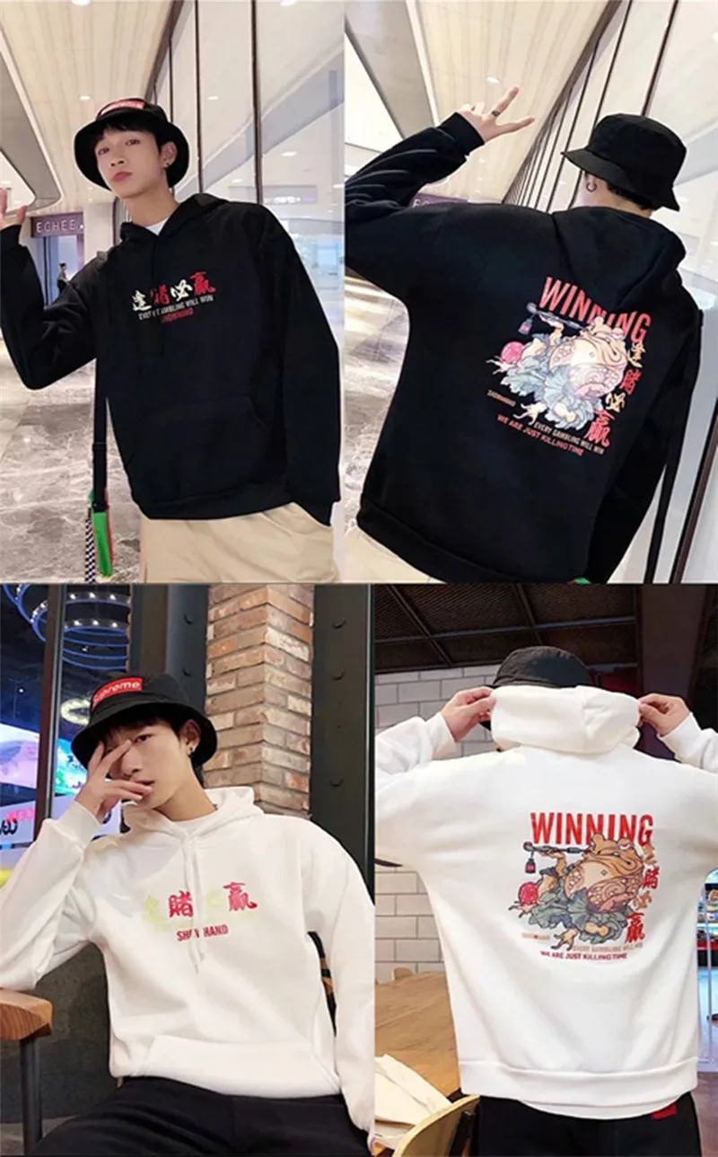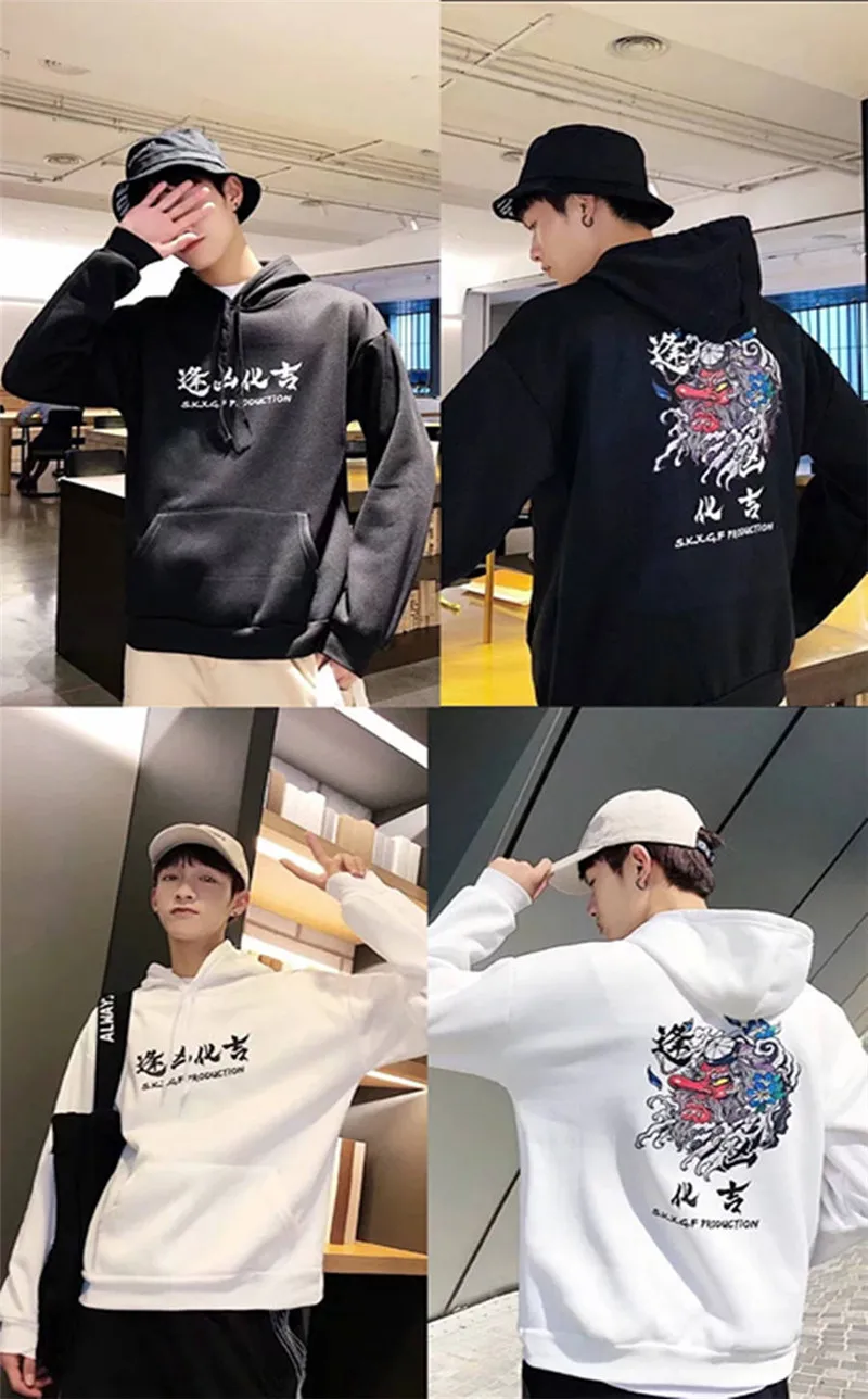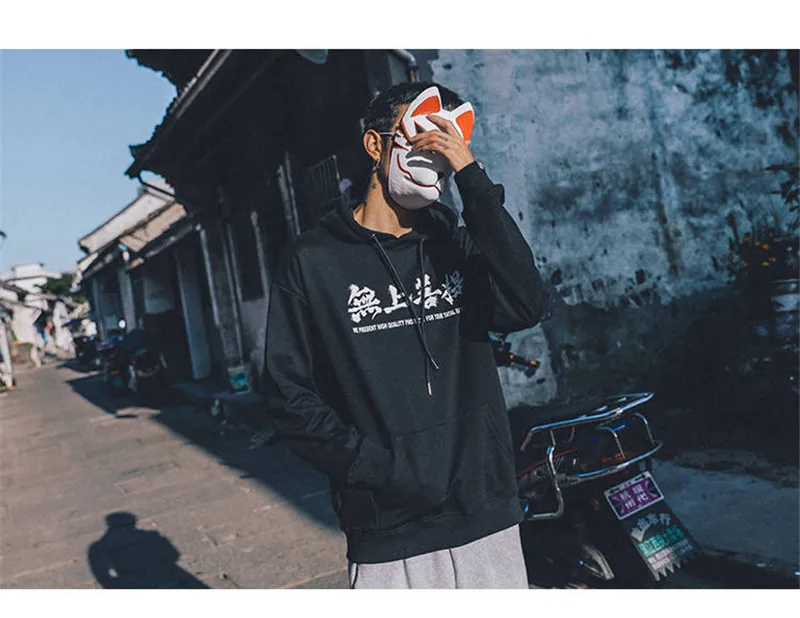 Модная толстовка с капюшоном в стиле Харадзюку, мужская повседневная черная толстовка в стиле хип-хоп с японским принтом, одежда в готическом стиле, топы, пальто, зимняя Толстовка в стиле панк