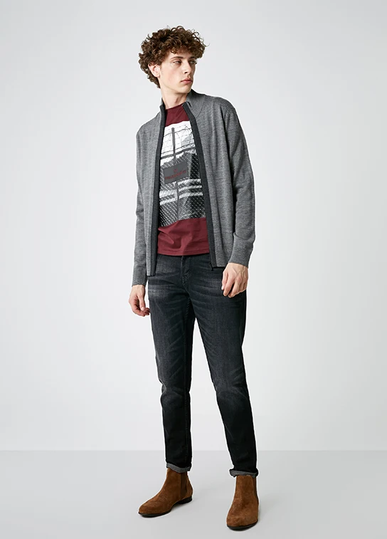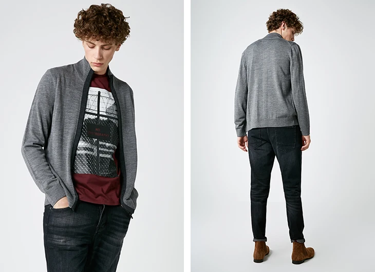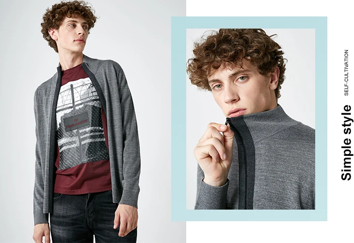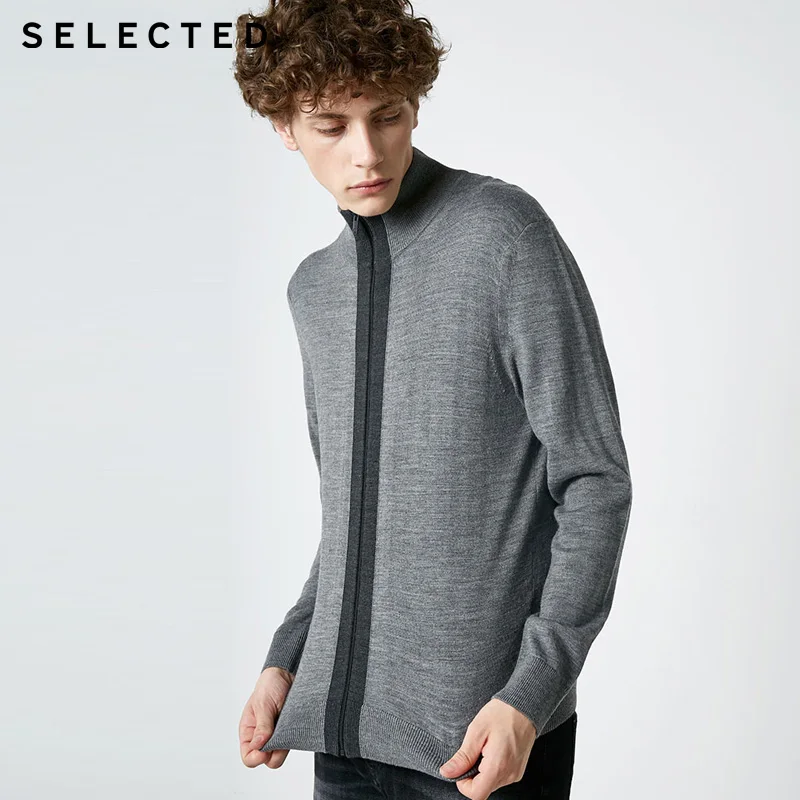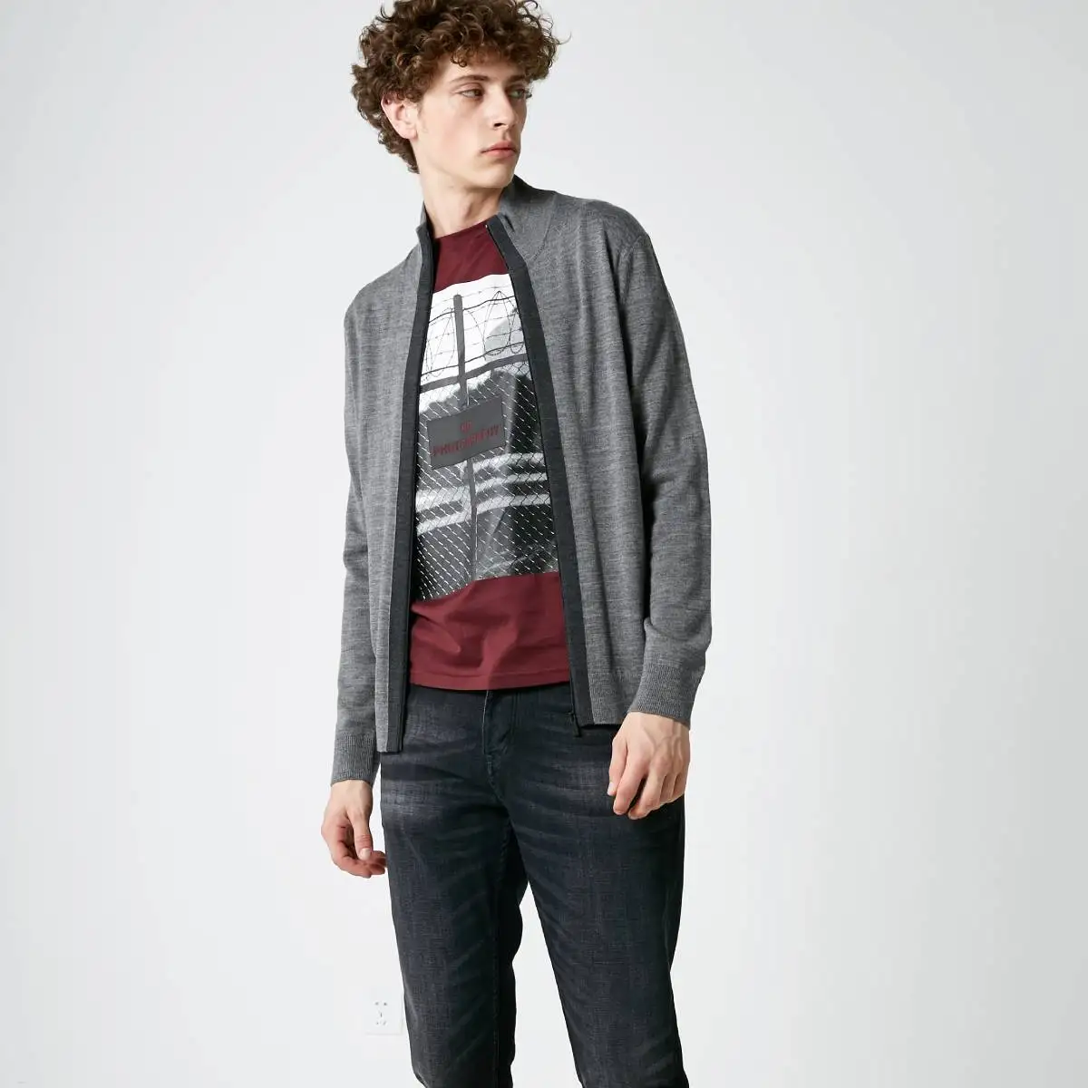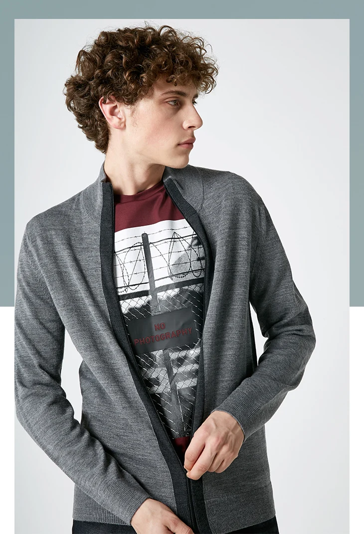 Мужской шерстяной кардиган на молнии с воротником 418324513