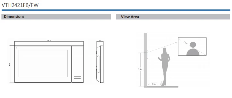 Монитор Dahua VTH2421FB VTH2421FW для помещений, емкостный сенсорный экран TFT 7 дюймов 1024x600, встроенный громкоговоритель, сигнализация