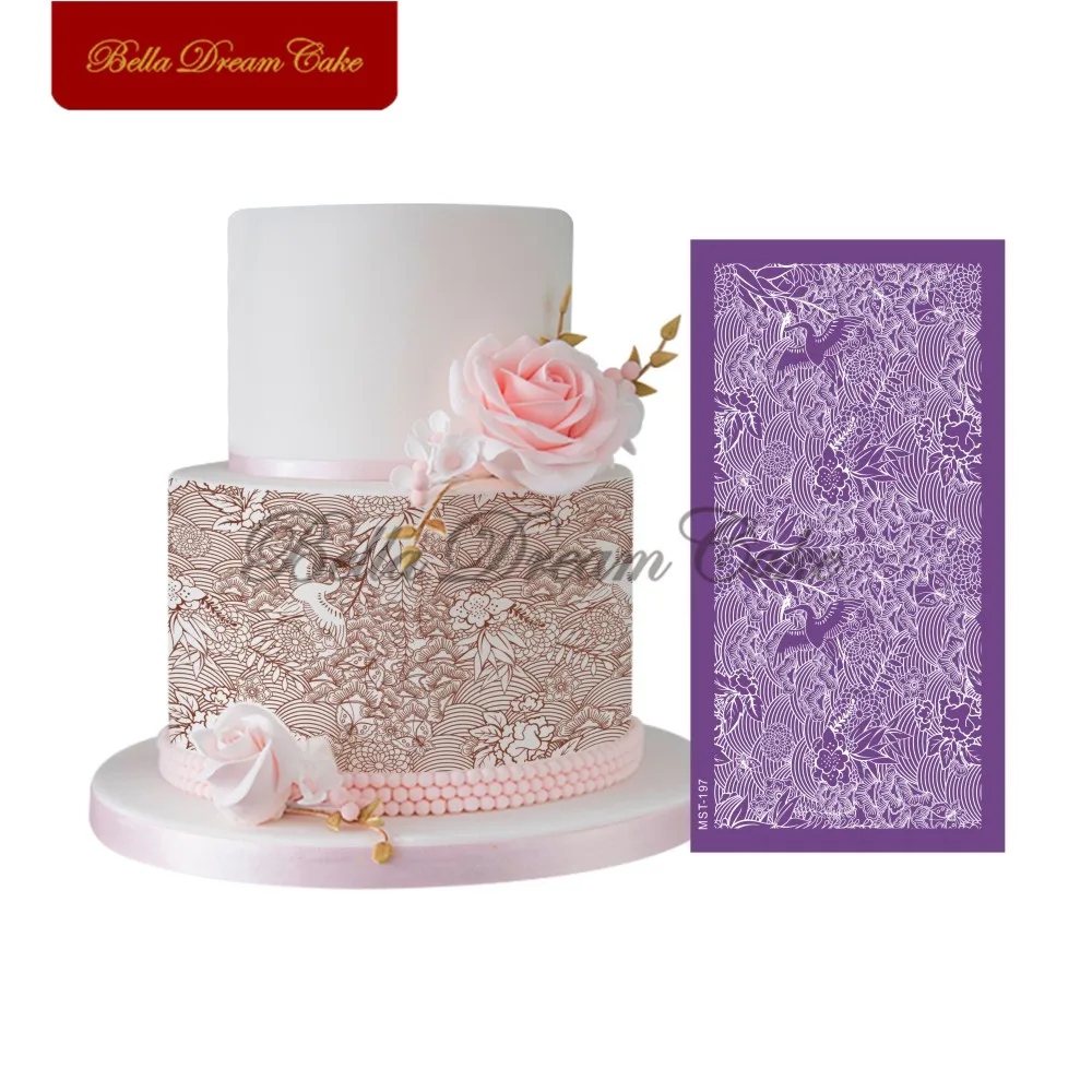 Цветок птицы дизайн торт сетка трафарет для мастики трафареты для т...