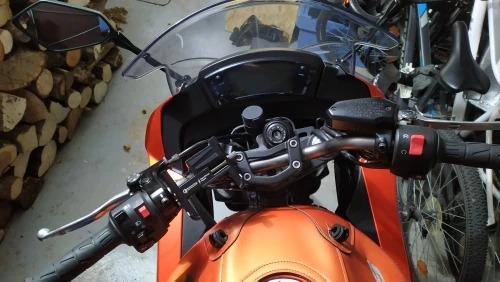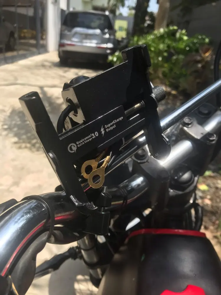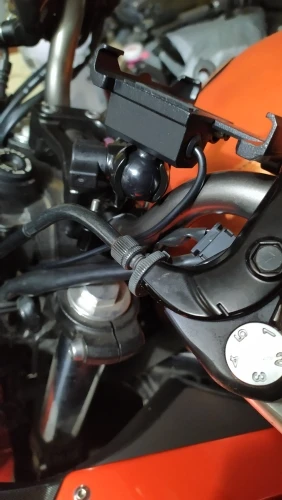 я покупаю уже 3й такой держатель телефона. сначала купил на свой мот, потом такой же заказал на мотоцикл жены, теперь 3й в преддверии сезона попросил заказать мой знакомый мотобрат. Отлично смотрится на мотоцикле, держатель не громоздкий. Само крепление надёжно фиксирует телефон. Я подключал телефон по самой простой схеме - непосредственно к клемам аккумулятора и длина проводов оказалась впритык.