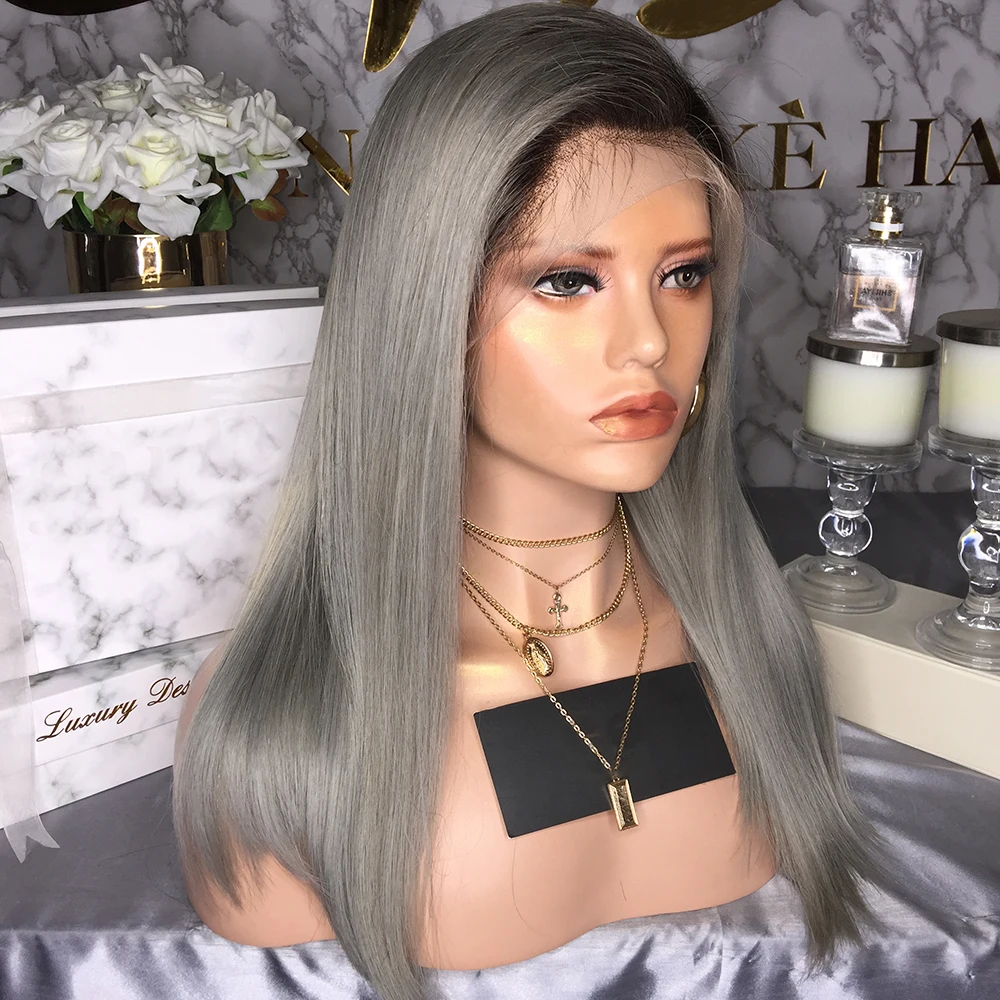 Серые парики из человеческих волос на сетке спереди с эффектом омбр...