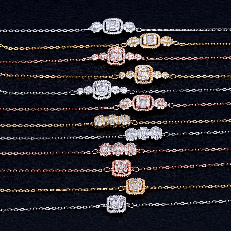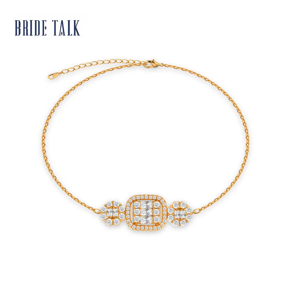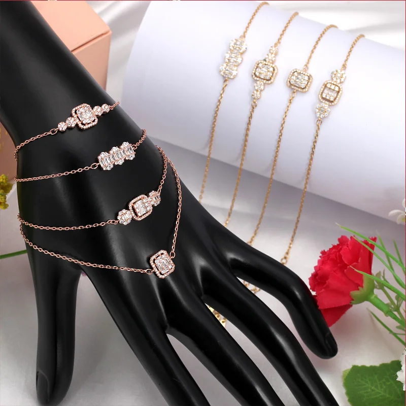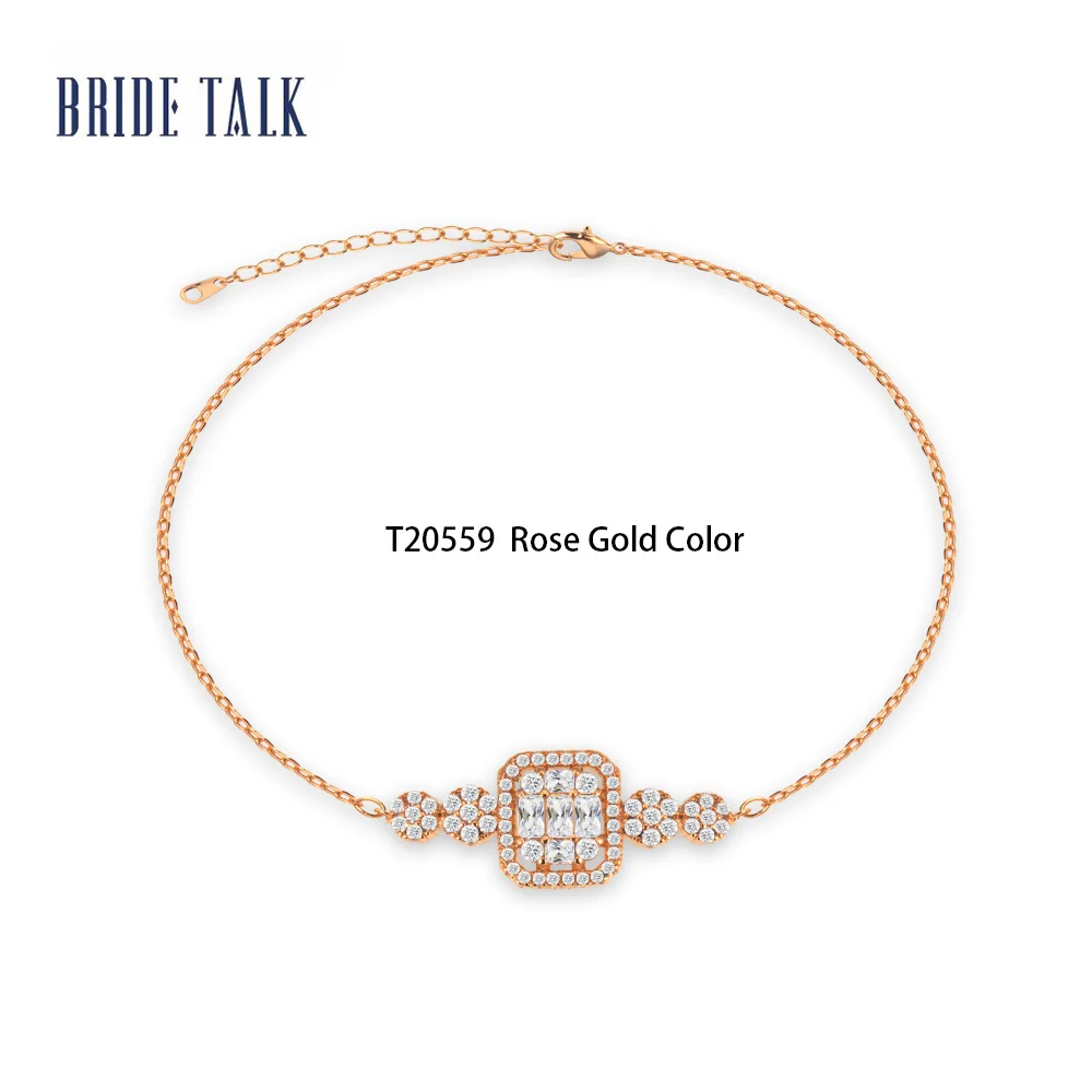Очаровательный браслет Bride Talk, медный багет, циркон, цепочка и звено, корейский стиль, женский модный браслет из розового золота, ювелирные изделия, подарок на день рождения