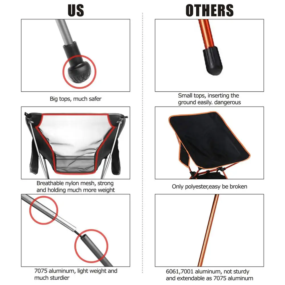 Сверхлегкий складной стул Hitorhike для путешествий, сверхпрочный стул с высокой нагрузкой, портативный стул для пляжа, туризма, пикника, рыбалки