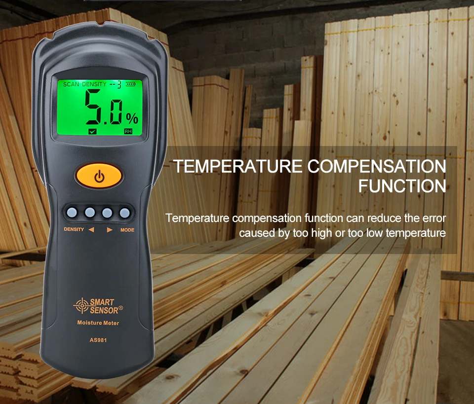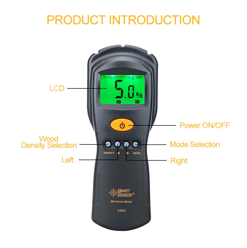Цифровой измеритель влажности древесины, картонный гигрометр для дерева и фанеры, детектор влажности с ЖК-дисплеем и подсветкой, AS981