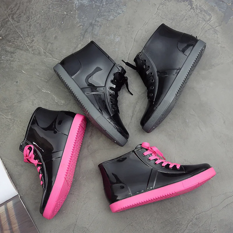 Непромокаемые сапоги на шнуровке из PU искусственной кожи Водонепроницаемый в байкерском стиле; Женская обувь в западном стиле; Женские ботинки; Ботильоны Съемная крышка платформа; Яркие женские ботильоны со 2019