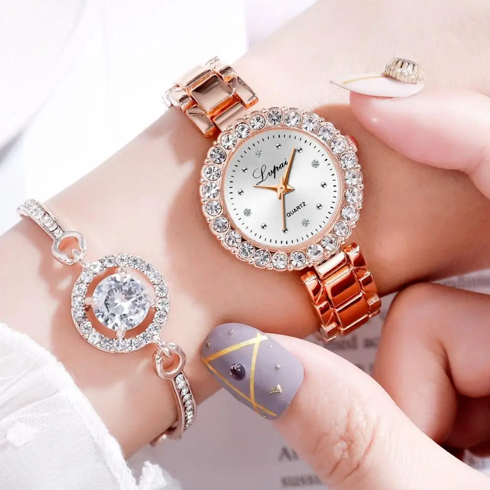 LVPAI Модные женские золотые часы 2019 унисекс из нержавеющей стали со стразами кварцевые наручные часы Montre Femme Прямая поставка