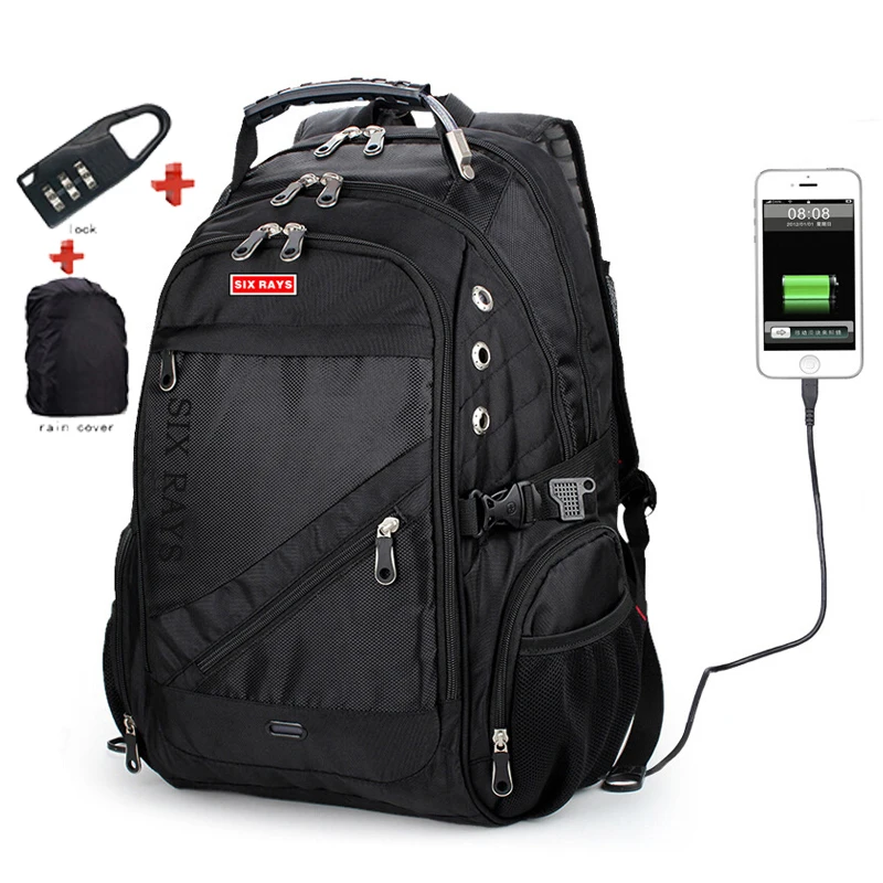 SIXRAYS Для мужчин сумка для ноутбука с внешним зарядным устройством USB, мужской компьютерный рюкзаки Анти-кражи Для мужчин Водонепроницаемый сумки Для женщин Для мужчин рюкзак с блокировки дождевик