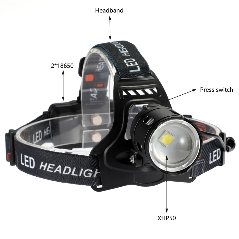 Новый светодиодный налобный фонарь High lum XHP50, 3 режима, водонепроницаемый, для езды на велосипеде, рыбалки, Головной фонарь, портативный налобный фонарь, наружное освещение