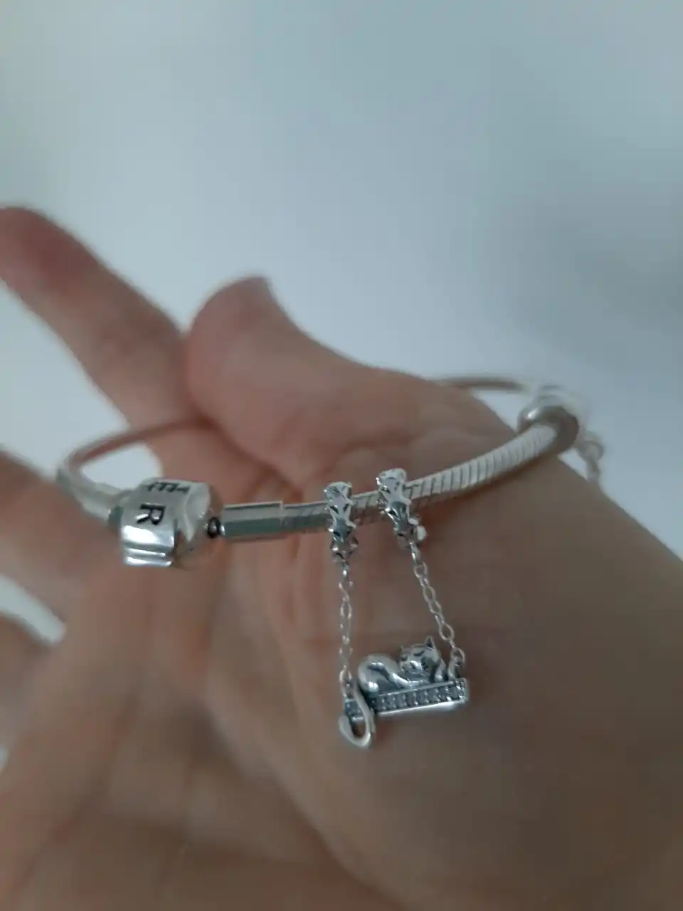 Это очень красиво, и я остаюсь супер на моем браслете Pandora. Я очень скоро приеду в Чили. Они серебряные, 100% рекомендуется!