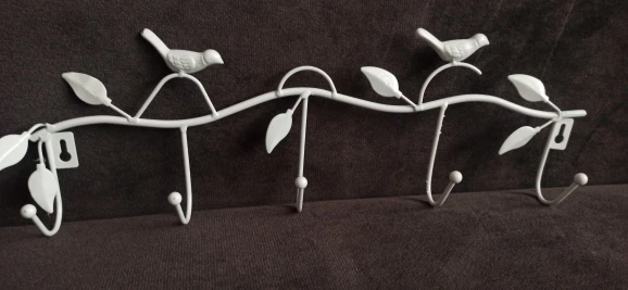 крючки красивые, но упаковано было просто в пакет ,поэтому в некоторых местах была отколота краска, пришлось докрашивать белым лаком.