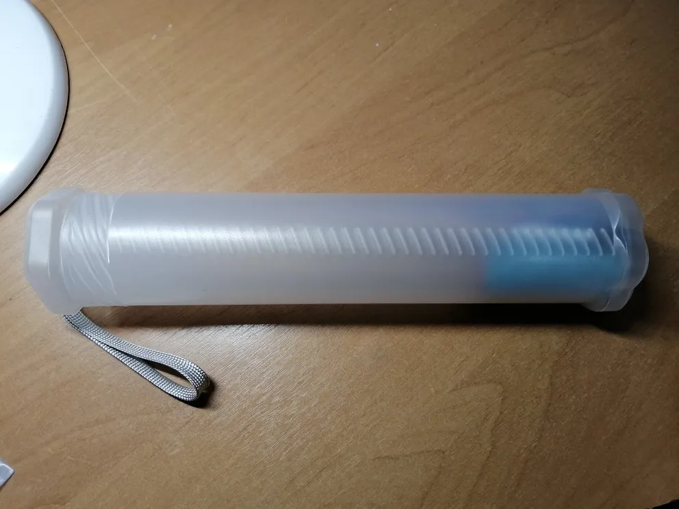 Описание товара совпадает с его натуральным видом. Хорошо регулируется по длине, как я и предполагал. Минус в том, что прочность материала оставляет желать лучшего, трещина на крышке появилась от легкого нажатия.