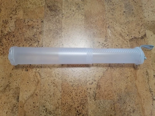 Посылка получена. Доставка составила 29 дней. Тубус полностью соответствует описанию. Крышки нет. Состоит из двух пластиковых вкручиваемых цилиндров, что позволяет регулировать длину. Приобретал для рыбацких целей. Два мотовила с поплавками различной высоты комфортно размещаются внутри. Трек-код на территории РФ не отслеживался. Товар и продавца рекомендую. За всё спасибо и справедливые пять звёзд.