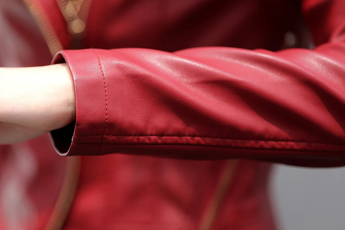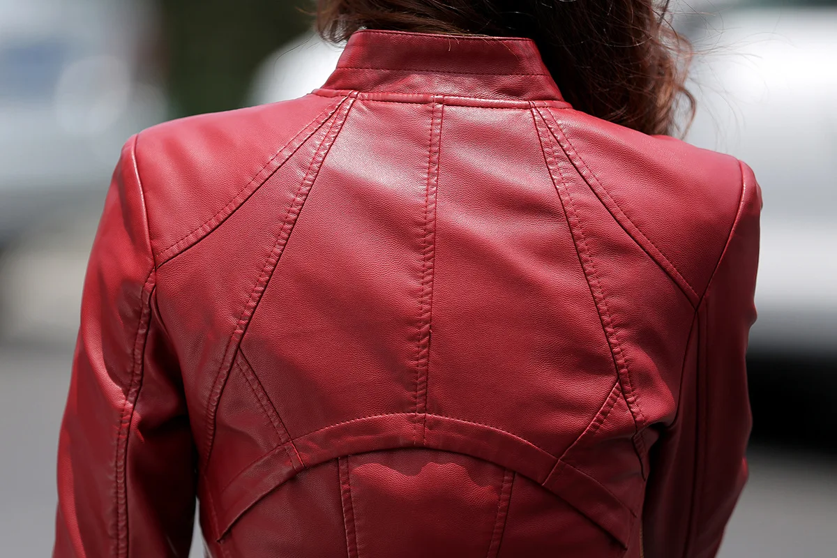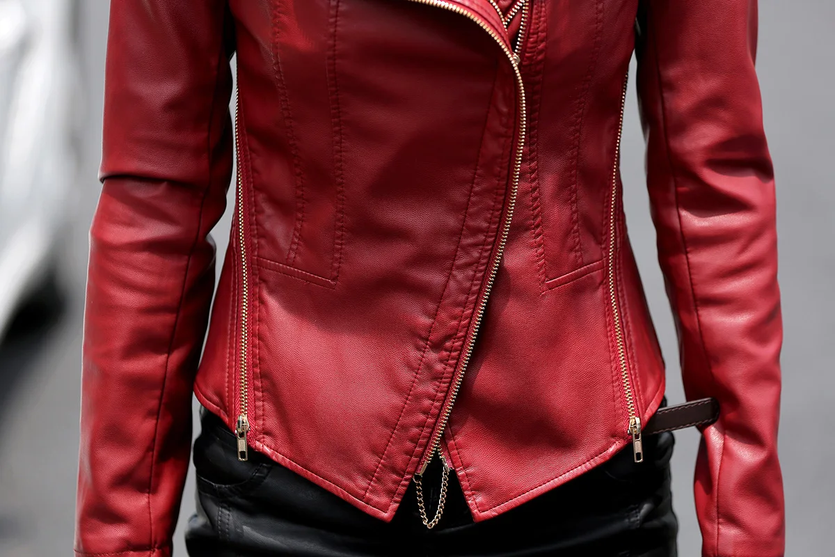 Куртка женская из искусственной кожи, на молнии, красная, осенняя