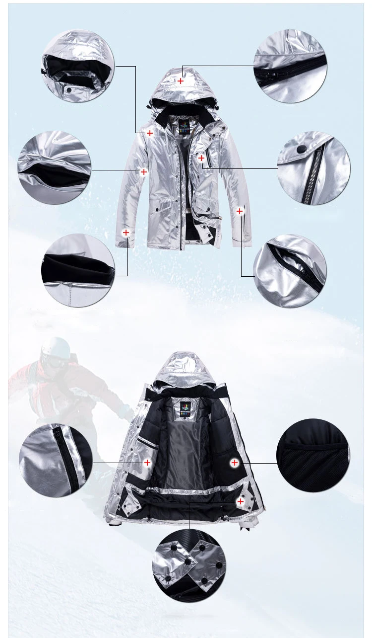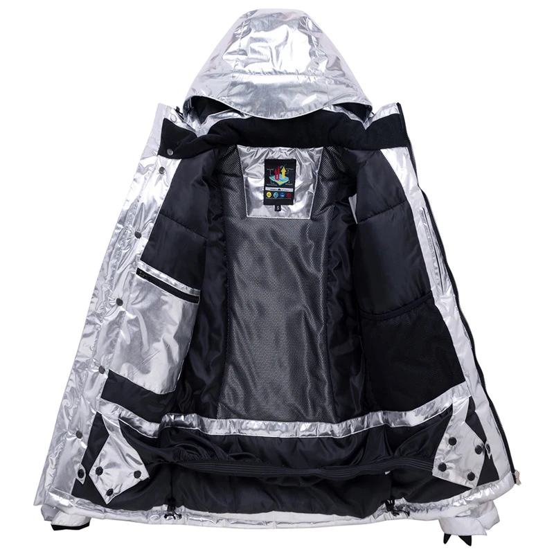 Куртка лыжная Женская, серебристая, водонепроницаемая, теплая, 2020