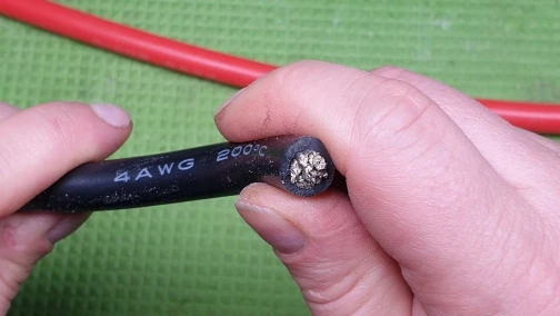 Кабель 6AWG очень хороший, более или менее ø8 мм (из медной нити), за исключением силиконовой трубки