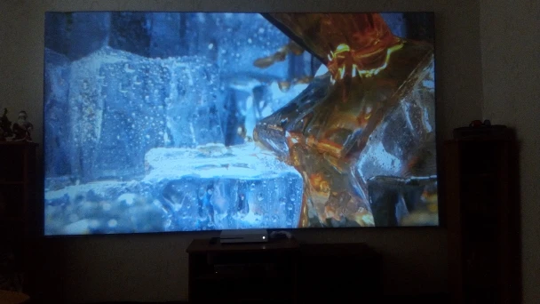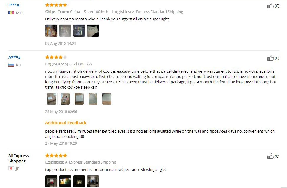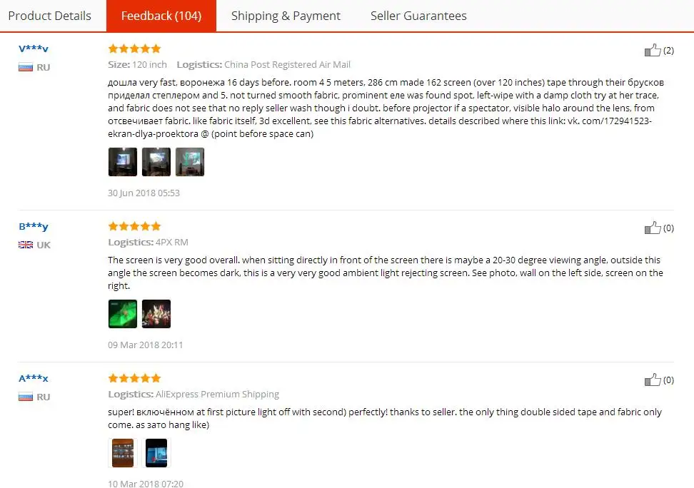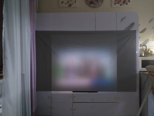Пришло за 10 дней, курьер доставил надом. повесил временно пока раму не сделаю. Эффект по сравнению с любой поверхностью просто земля и небо, при свете можно смотреть вообще без проблем отсюда и малые углы обзора т.е. надо сидеть прямо под проектором метр влево или вправо чуть пропадает яркость но не критично а так очень доволен!