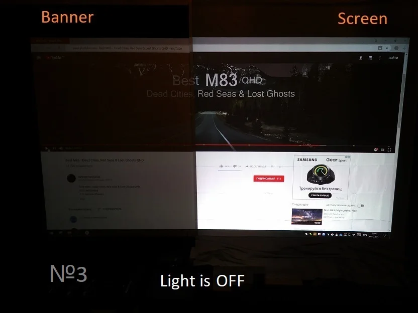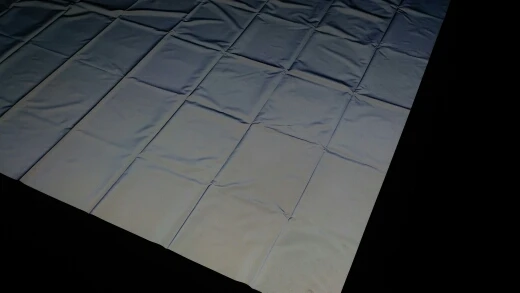 смотреть желательно сидя прямо перед экраном. от простого белого полотна получаются больше углы обзора. здесь при смещении яркость теряется. плюс пока не получилось нормально разгладить складки. материал из которого делают светоотражающие полосы на одежду. продавец сначала дал левый трек и похоже отправил только после того как я написал сообщение.