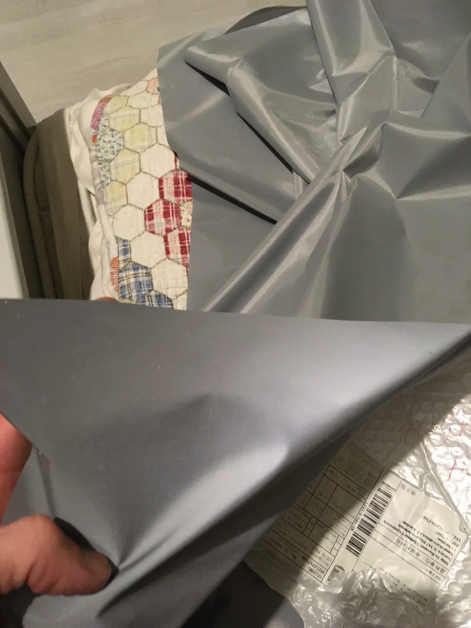 ткань светоотражающая. натянул её на каркас деревянный. какие-то пятнышки появляются конечно. не знаю не пробовал ещё оттирать но думаю всё ототрётся. смотреть можно только вдвоём в обнимочку. уходишь немного в сторону и меняется яркость. очень значительно. а так даже днём можно смотреть.