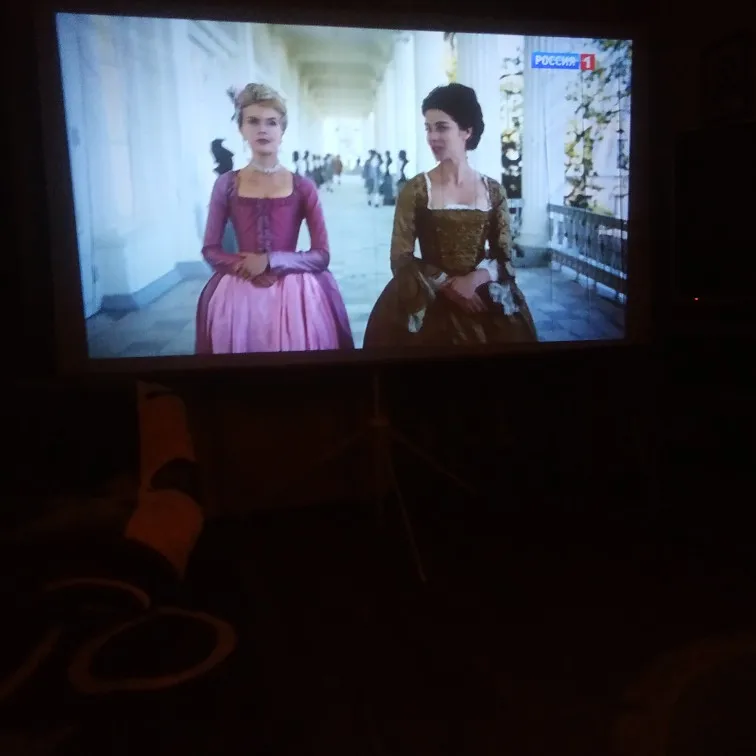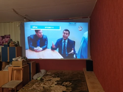 Всё хорошо, доставка 10 дней быстро, молодцы, вроде неплохо, надо только проектор вешать строго под углом 90°,и будет ярко и хорошо.