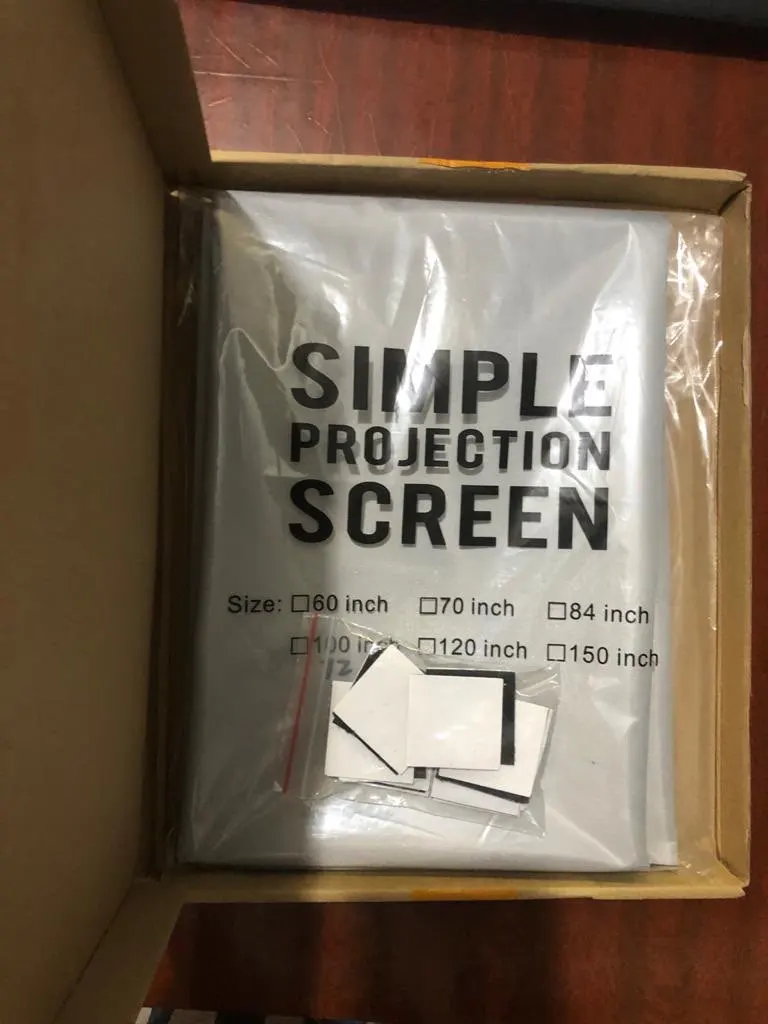 Этот продукт отлично подходит для просмотра проекции в освещении, а не в темной среде. Мне очень нравится, но продукт поставляется в сложенном виде, и требуется много работы, чтобы сгладить продукт. Было бы гораздо лучше для приложения, если бы он был отправлен в рулоне.