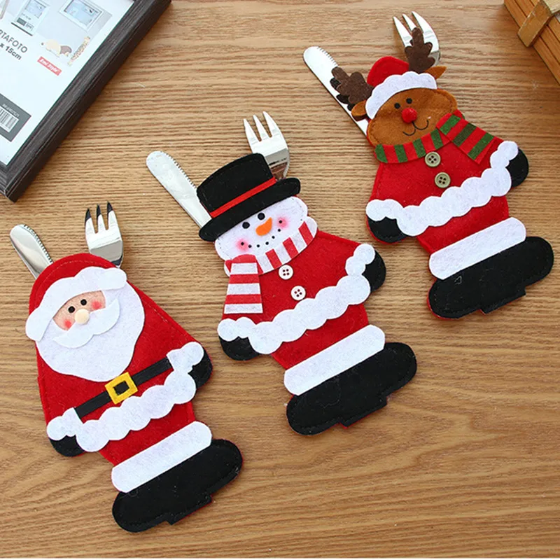 Рождественские украшения для стола, набор чехлов для ножей и вилок,...