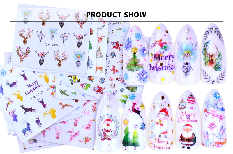 2022 зимняя новая версия, модный дизайн ногтей, рождественские наклейки для ногтей, наклейки для ногтей Санта-елка, снеговик, рога, наклейки для дизайна ногтей, рождественский подарок