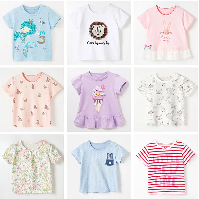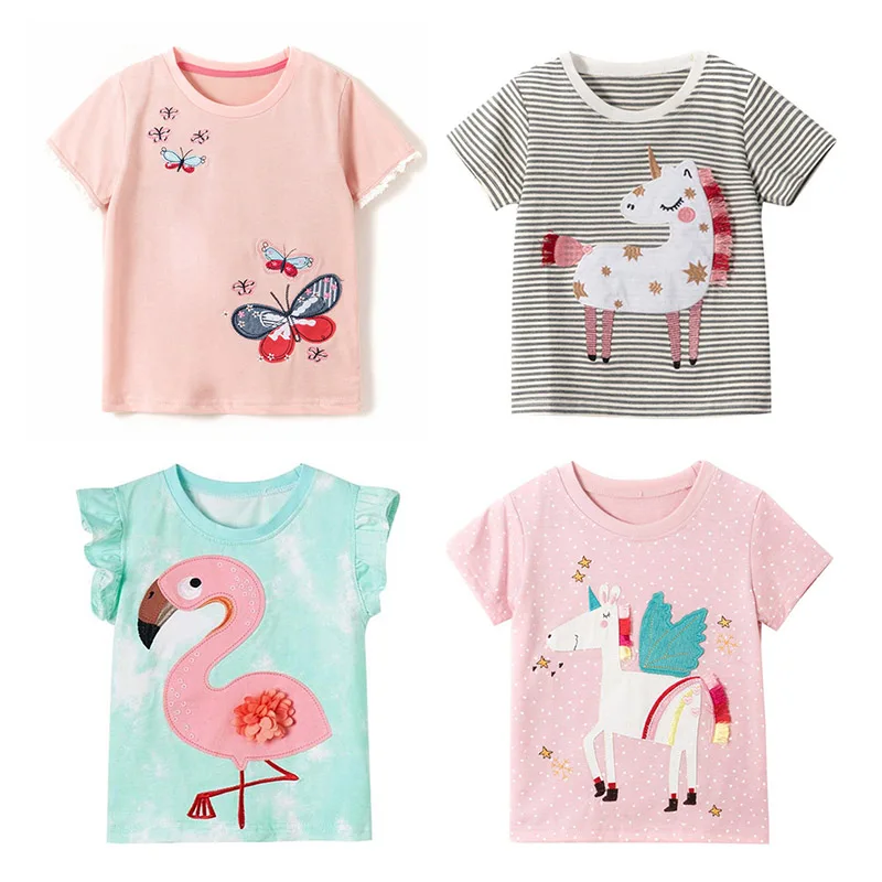 От 1 до 7 лет детская футболка для девочек, топы из 100% чесаного хлопка, брендовая летняя футболка для младенцев, одежда для маленьких девочек, Детская футболка с героями мультфильмов