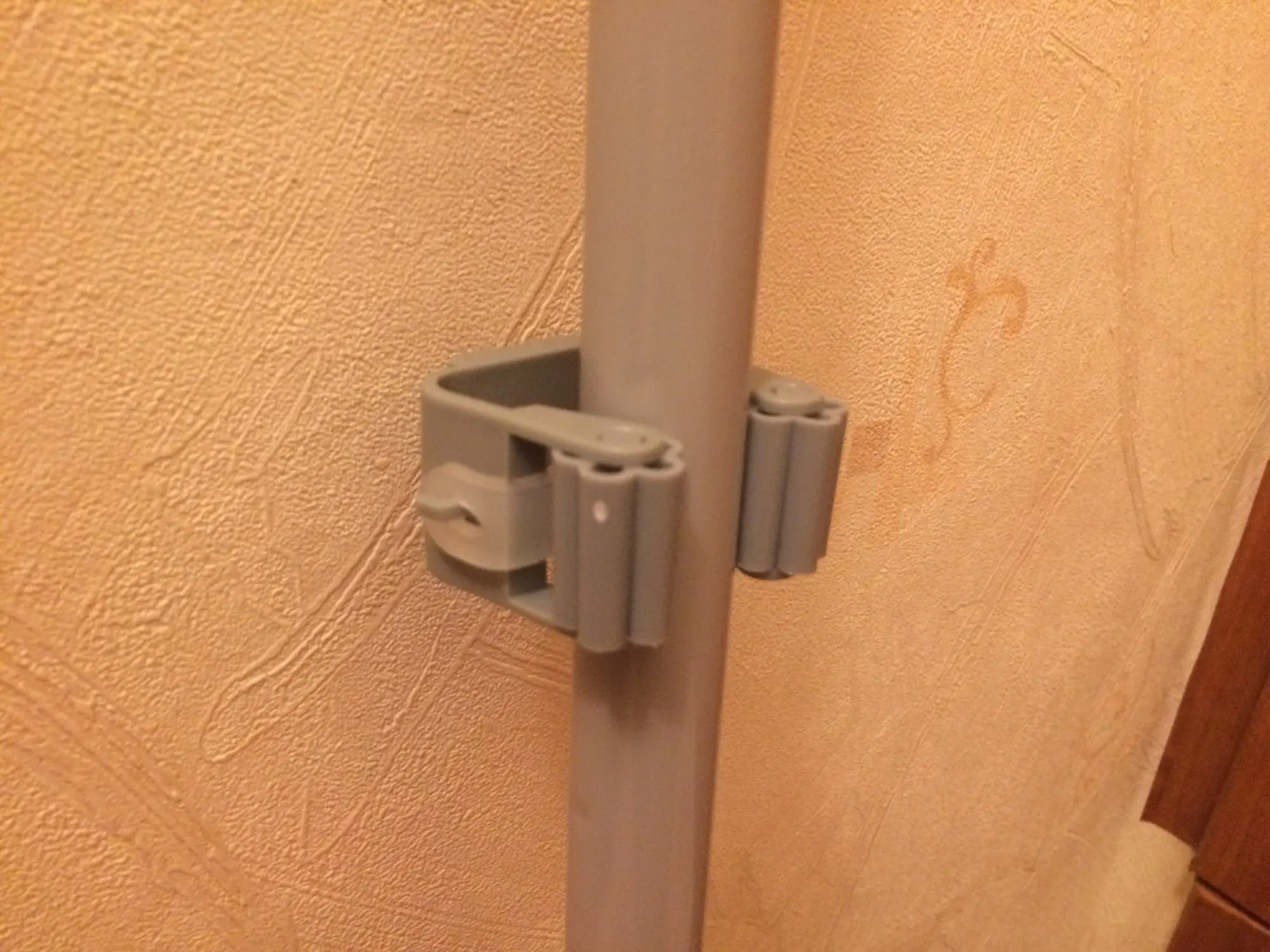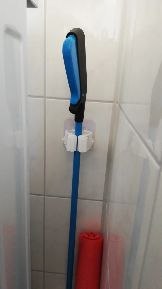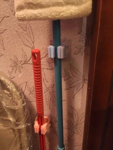 Держателем для швабры очень доволен! Сделан из прочного пластика. Зажимы достаточно тугие, чтобы держать принадлежности для уборки любооо диаметра (туда и веник можно вставить). С продавцом общаться не пришлось, т.к. доставка не заставила себя ждать. Товар и продавца рекомендую!