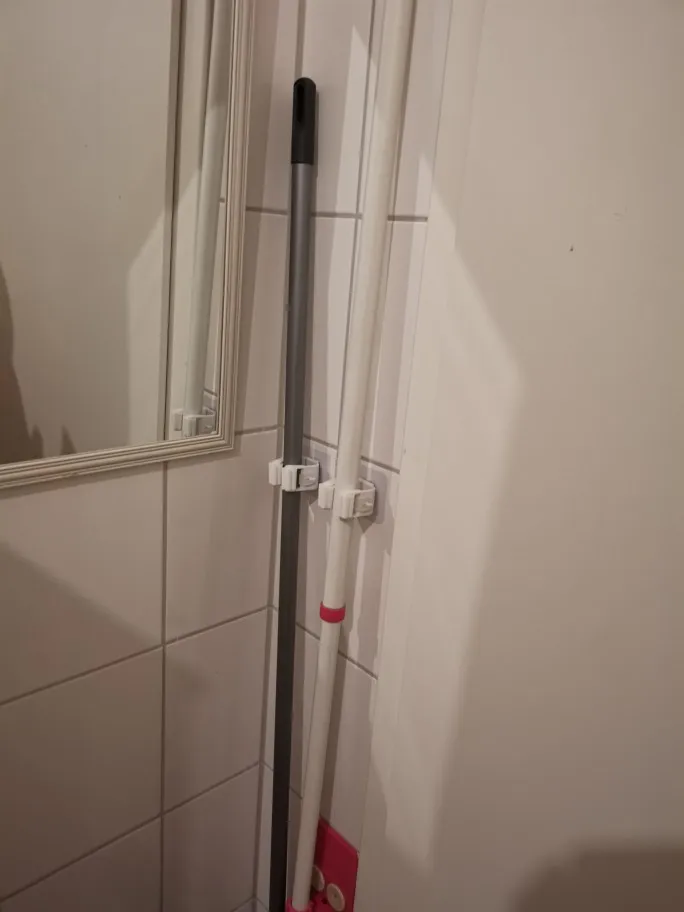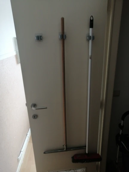 Прекрасные удобные штучки для подвески швабр. И я даже совок подвесила. Теперь на полу ничего не стоит, что очень радует